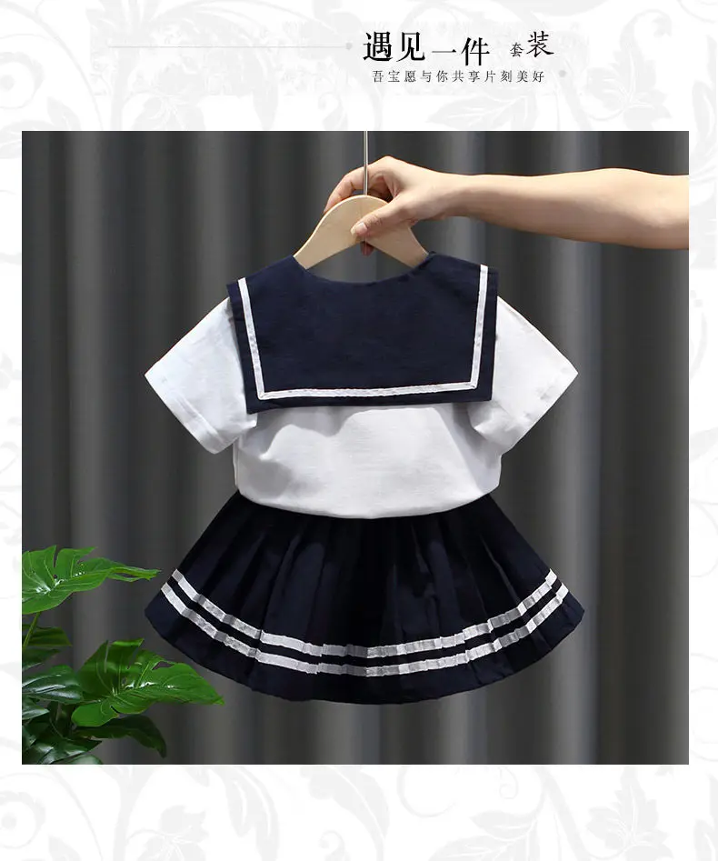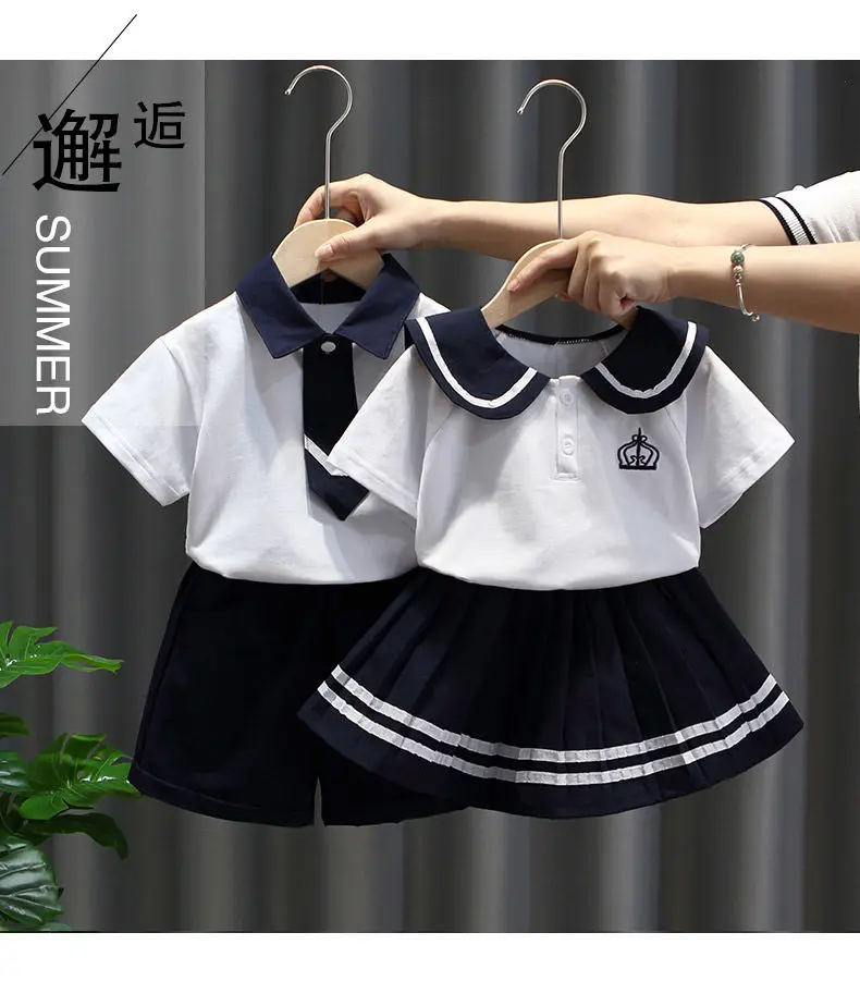 2-10Y Brother Sister Sibling Look Summer Navy Collar Boy girl Clothes Set Short Sleeve Girl Preppy Dress Family Matching Outfits