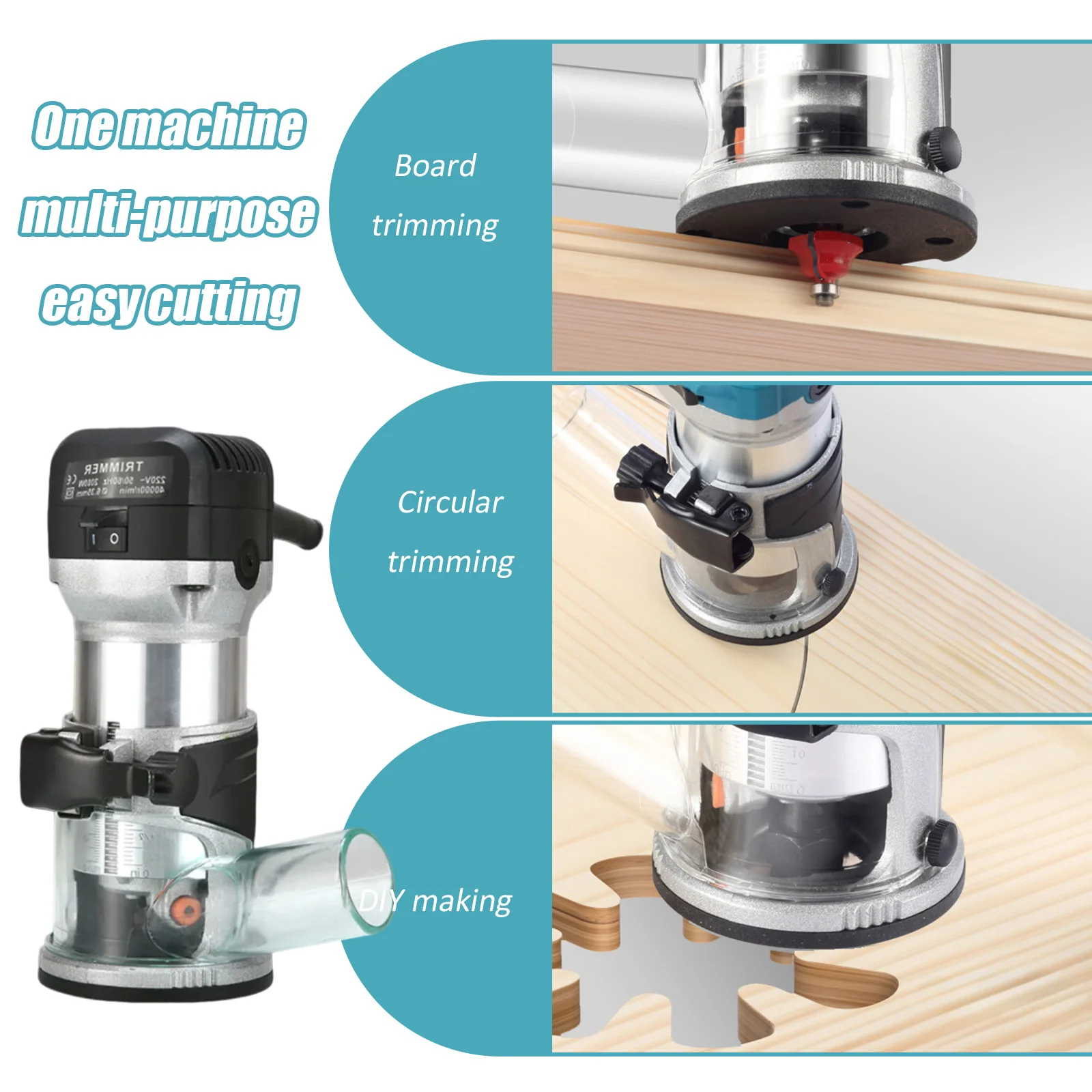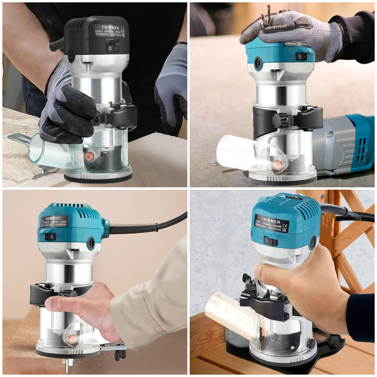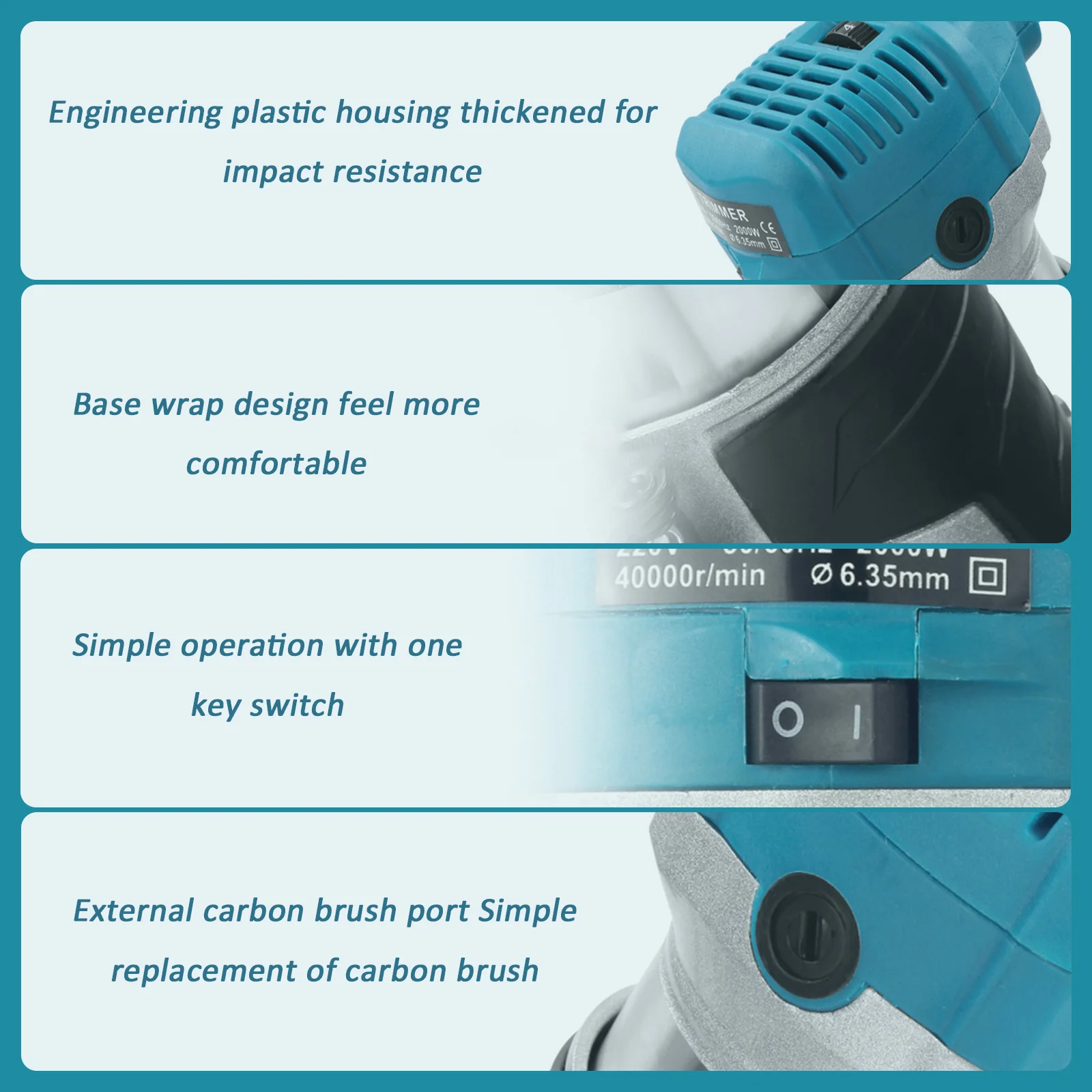 2000W Wood Electric Trimmer Woodworking Milling Machine 6th gear Hand Trimmers Wood Edge Router 40000RPM Home DIY Tools