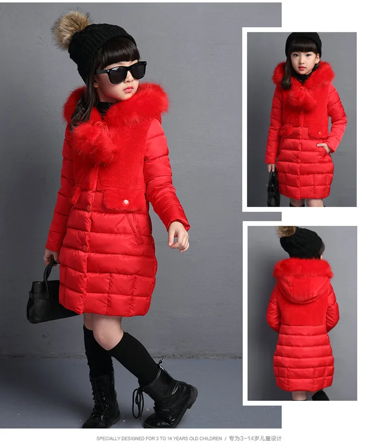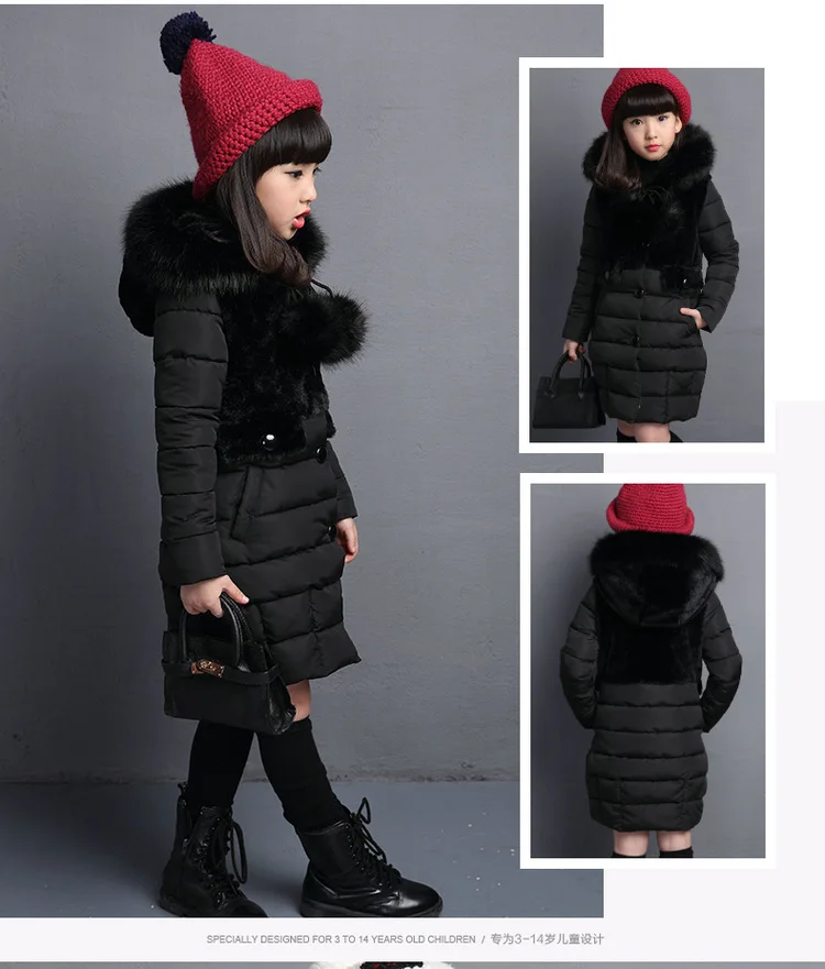 Josh Schuppe 2024 Winter Warm Jackets for Girls Fashion Fur Hooded Children Girls Waterproof Outwear Kids Cotton Lined Parkas