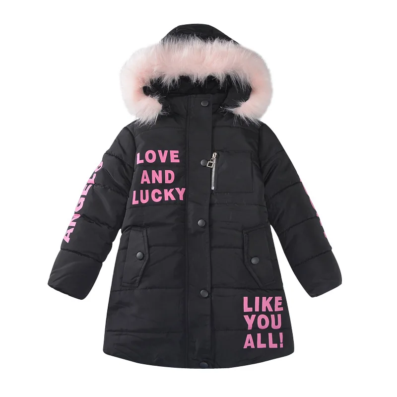 Jamey Feeney 2024 Winter Warm Jackets for Girls Fashion Fur Hooded Children Girls Waterproof Outwear Kids Cotton Lined Parkas