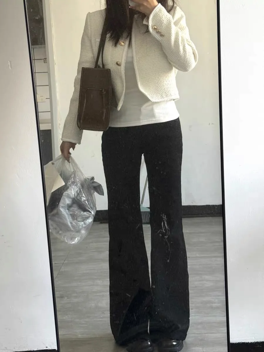 2025 Autumn Winter Women's Flared Denim Pants Y2k Low Rise Jeans Trumpet Pants Bell Bottom 2000s Slim Black Stacked Jeans New In
