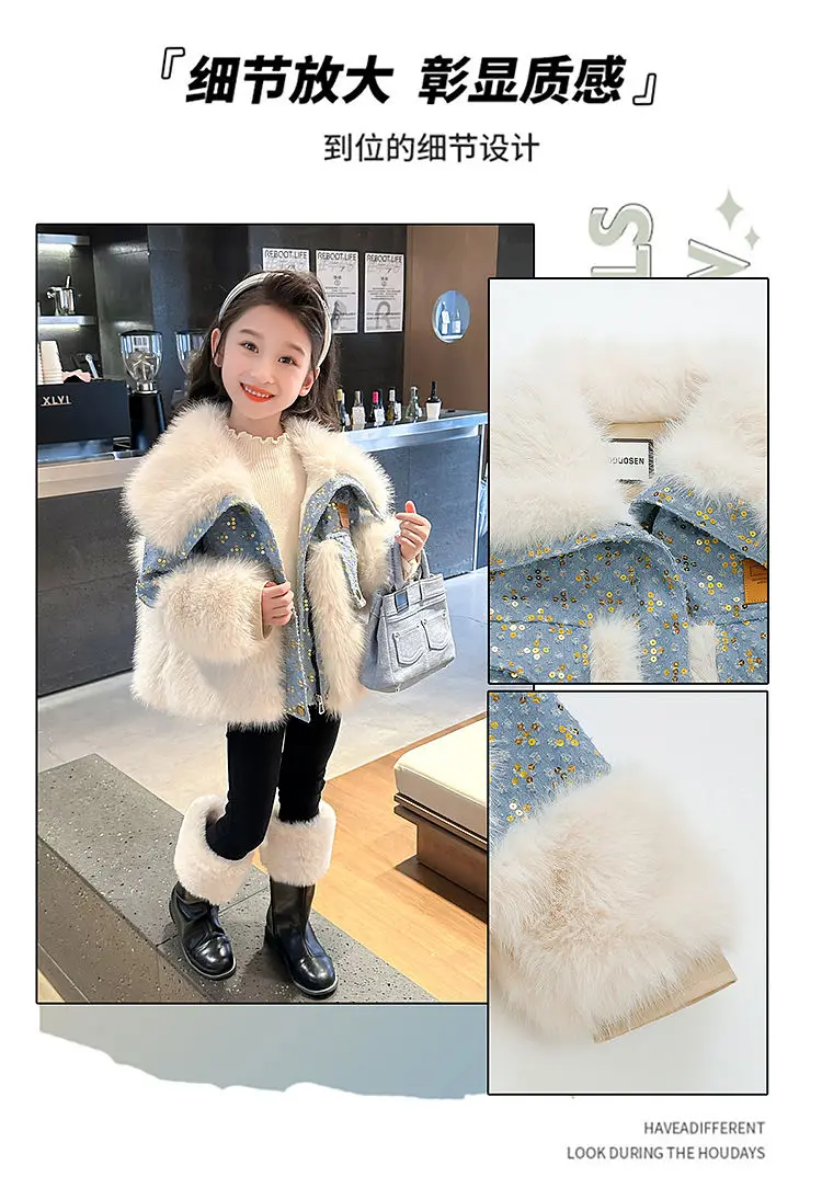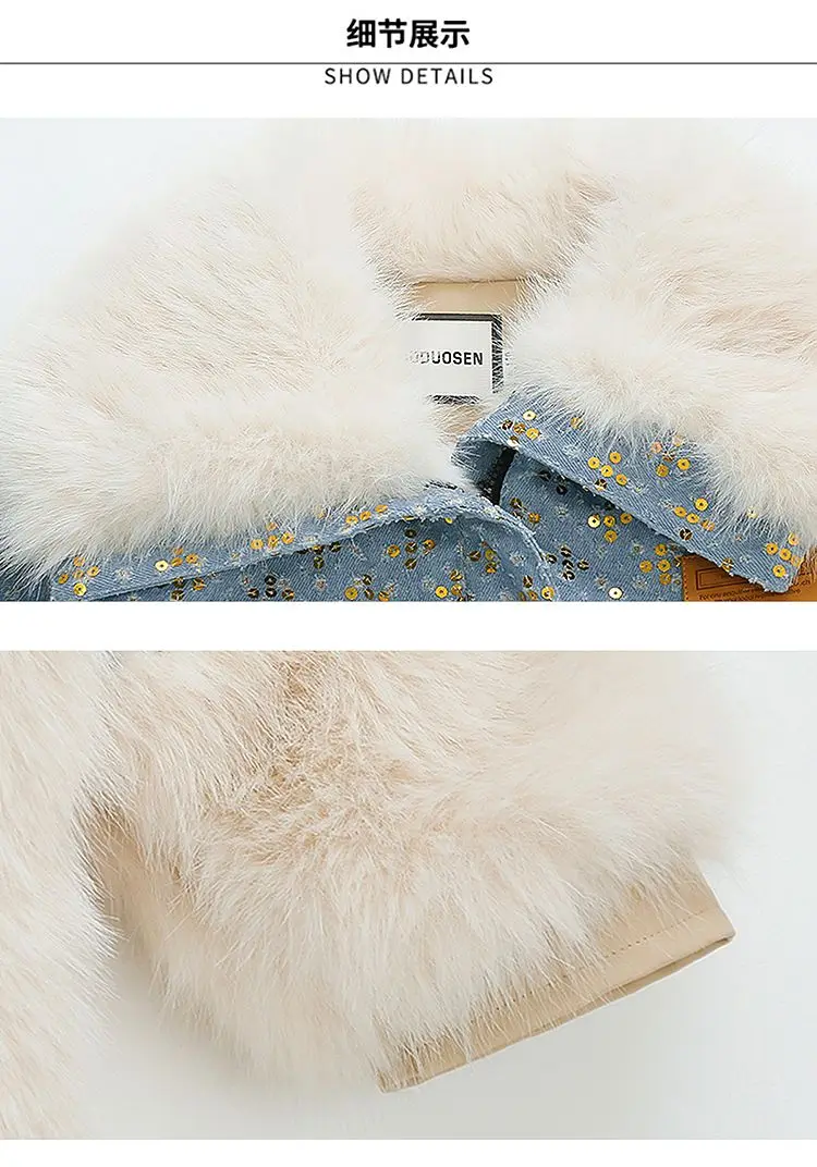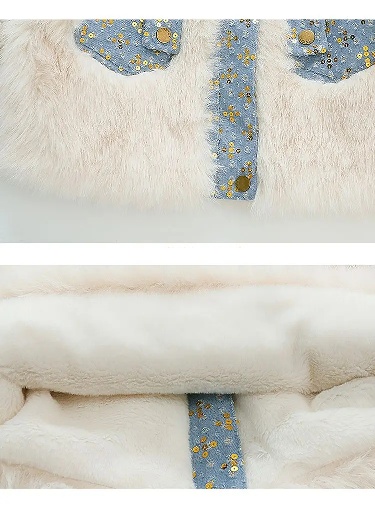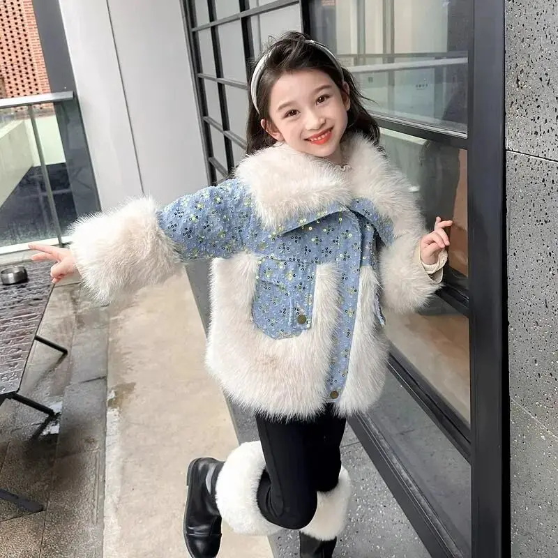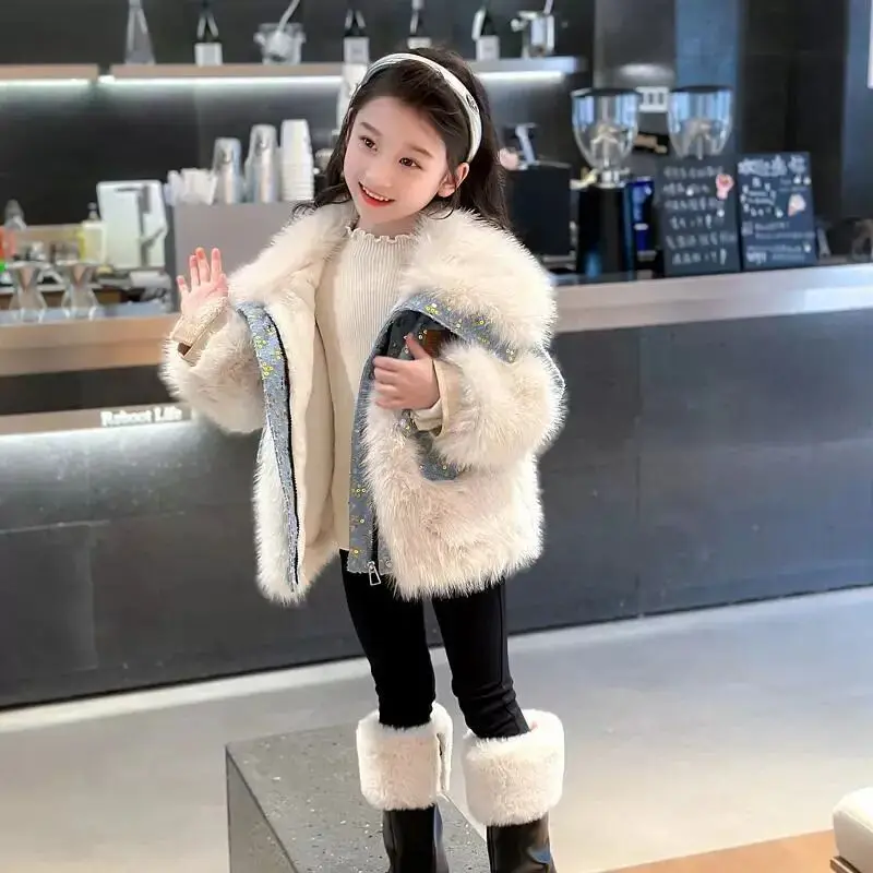 Jessie Mante 2025 New Winter Jacket Kids Girl Parkas Warm Faux Fur Coat For Girls Children Sequin Winter Clothes Soft Party Baby Girl Coats