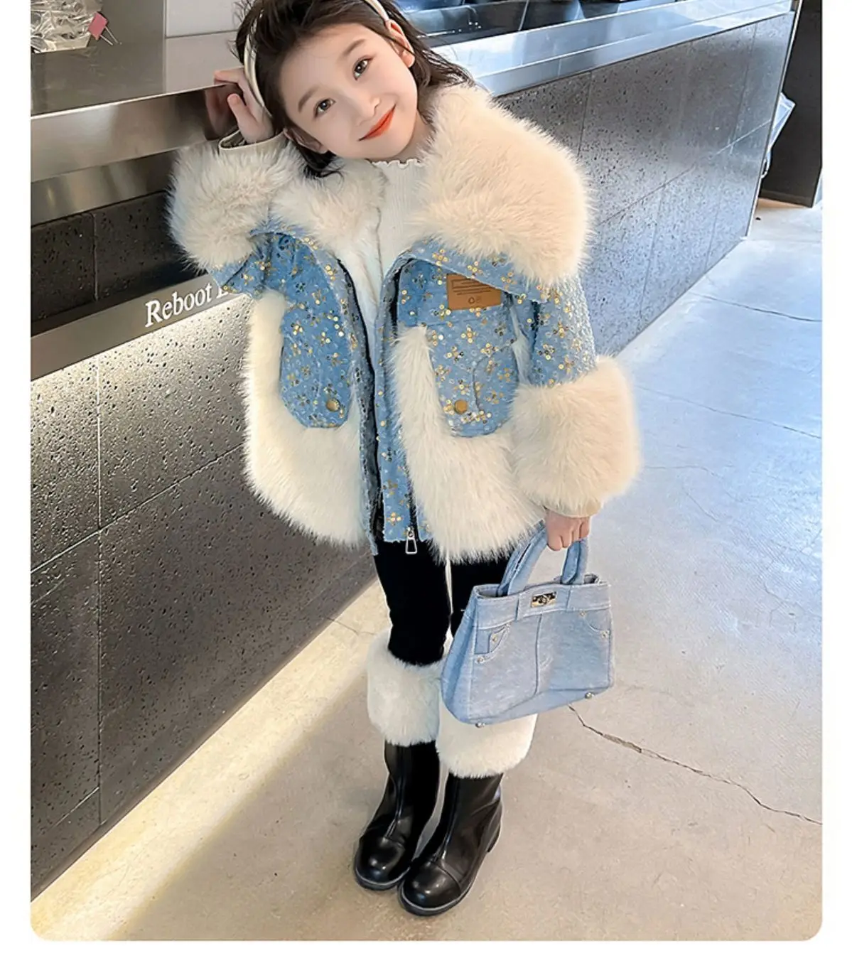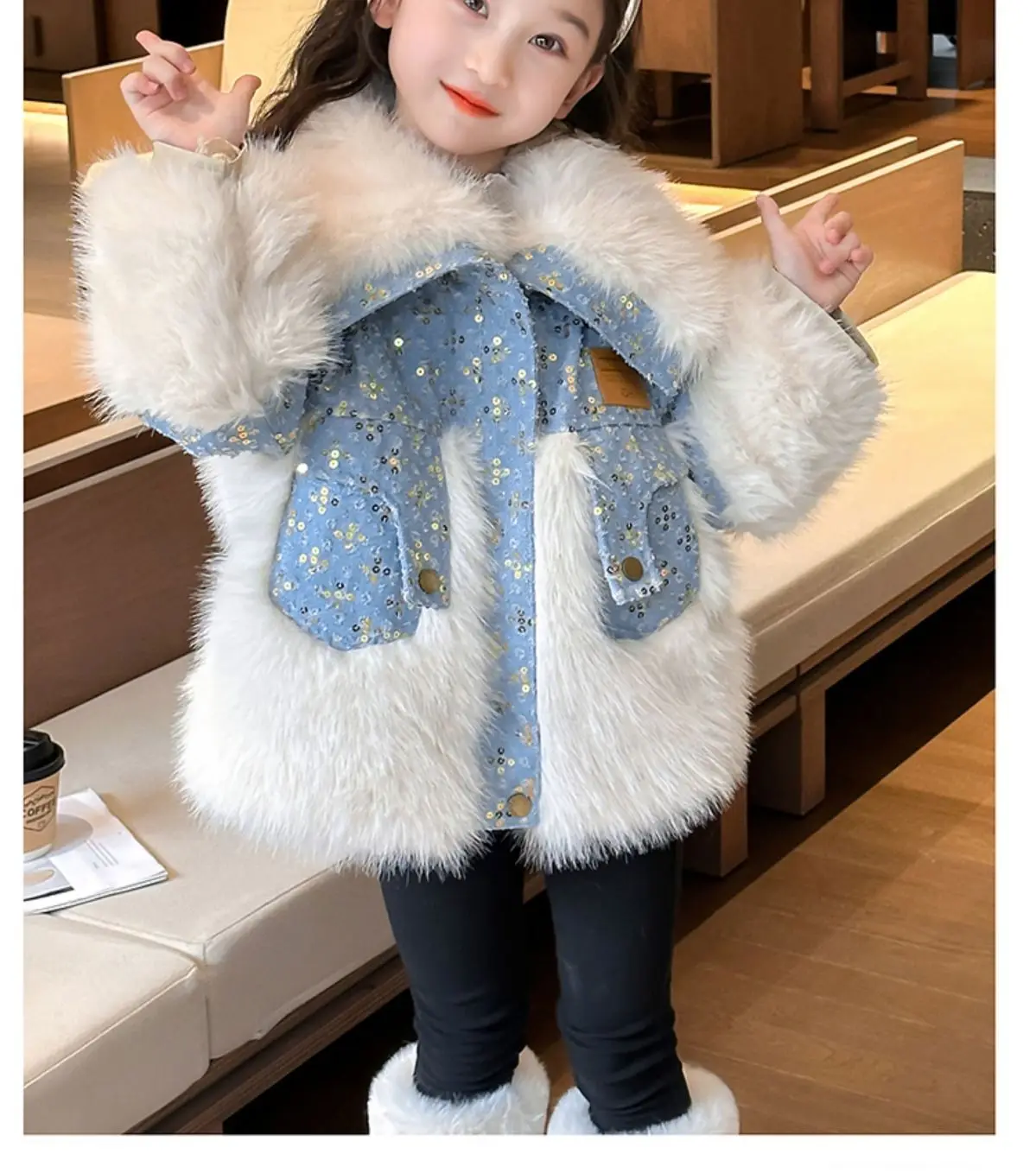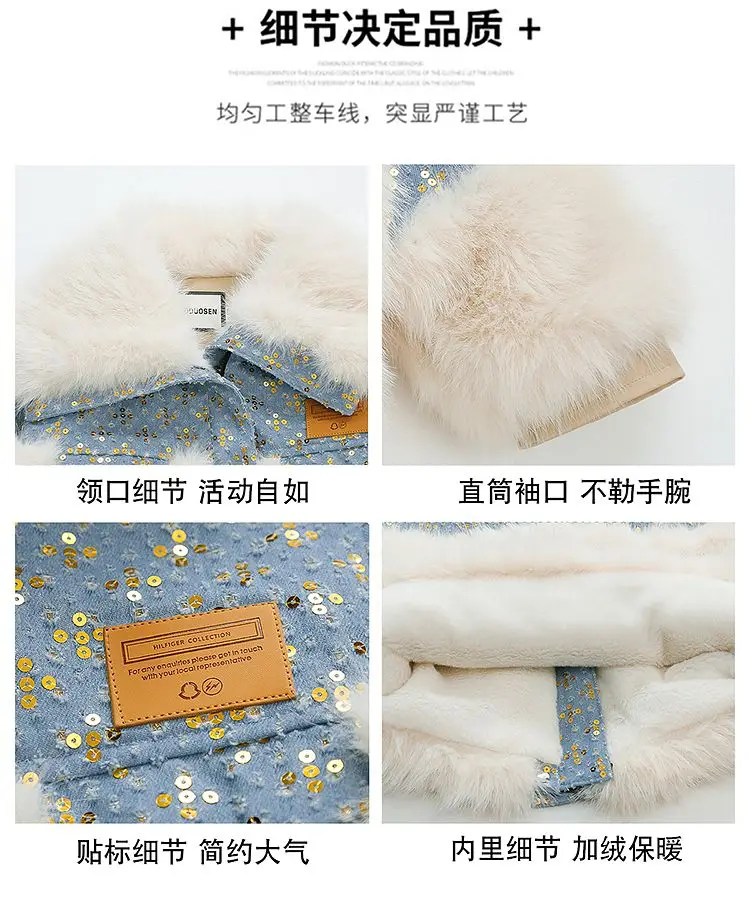 Jessie Mante 2025 New Winter Jacket Kids Girl Parkas Warm Faux Fur Coat For Girls Children Sequin Winter Clothes Soft Party Baby Girl Coats