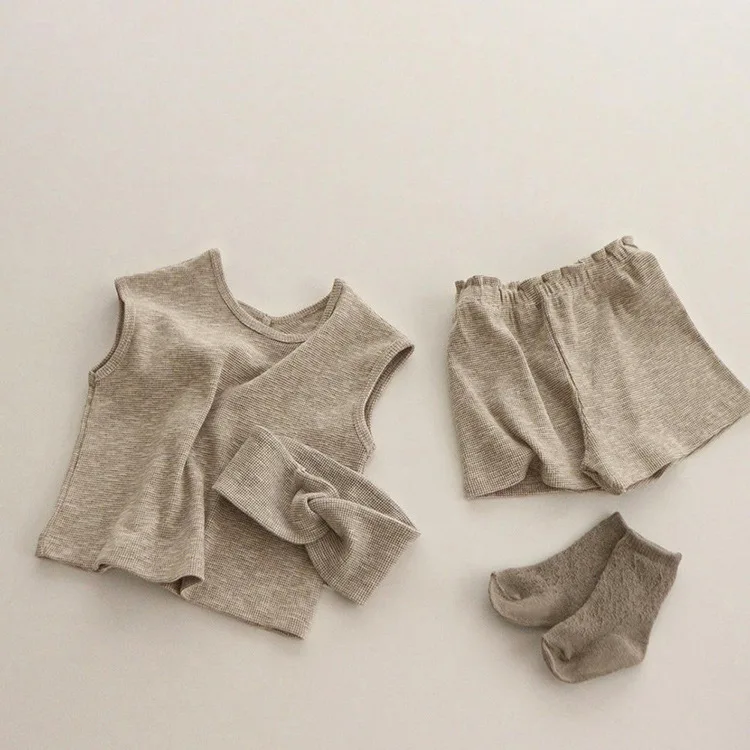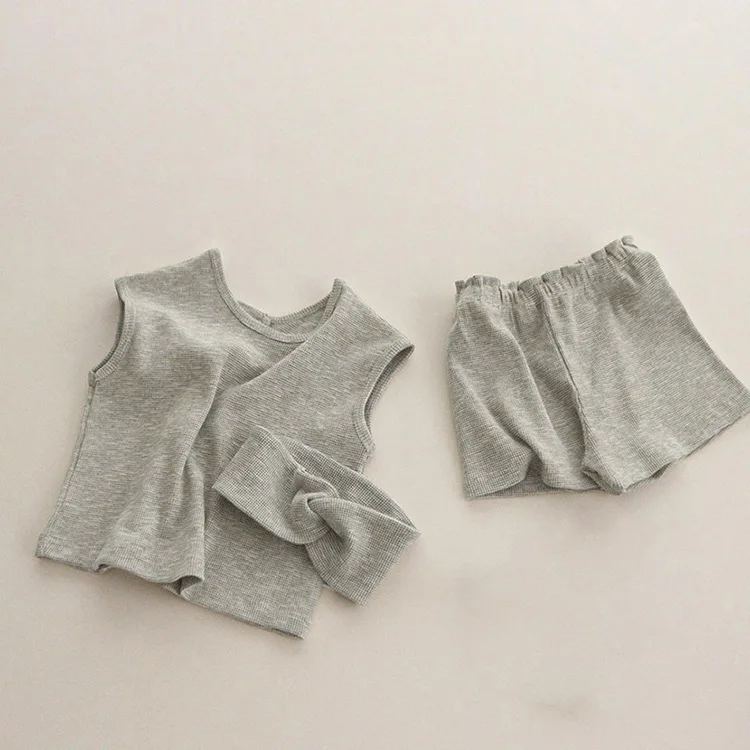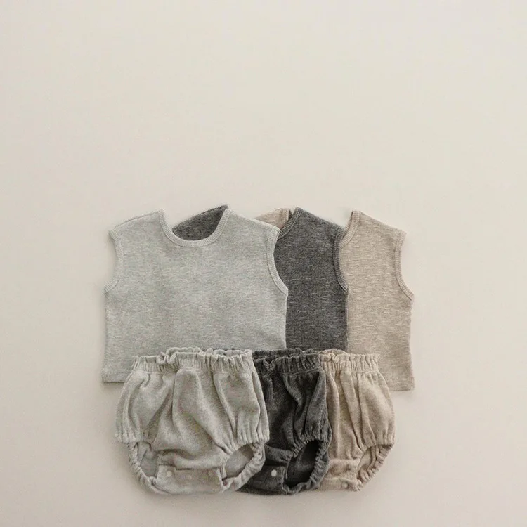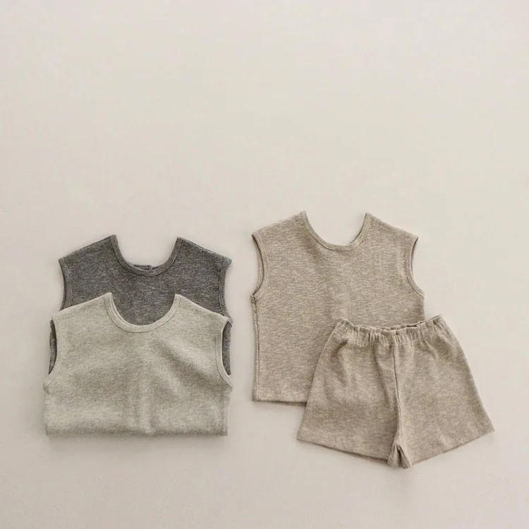 2025 Summer New Baby Sleeveless Breathable Clothes Set Cotton Kids Pajamas Set Infant Vest Shorts 2pcs Suit Solid Baby Outfits