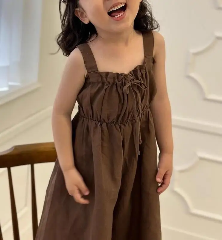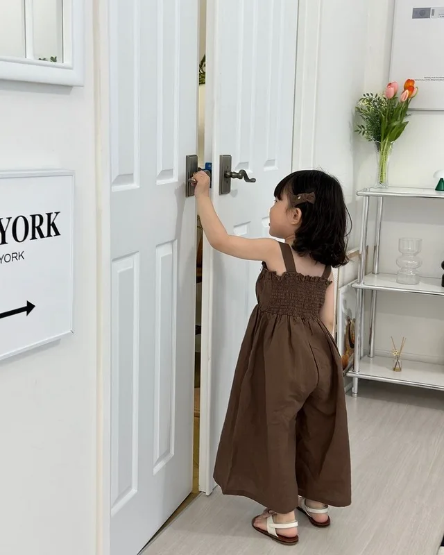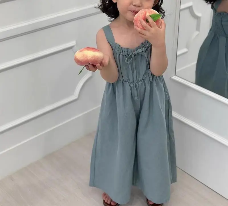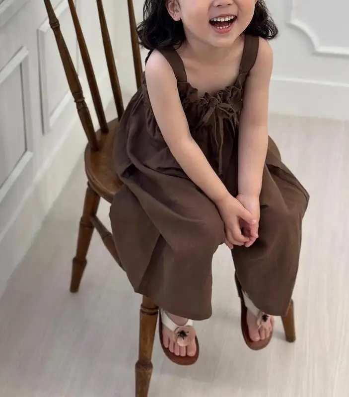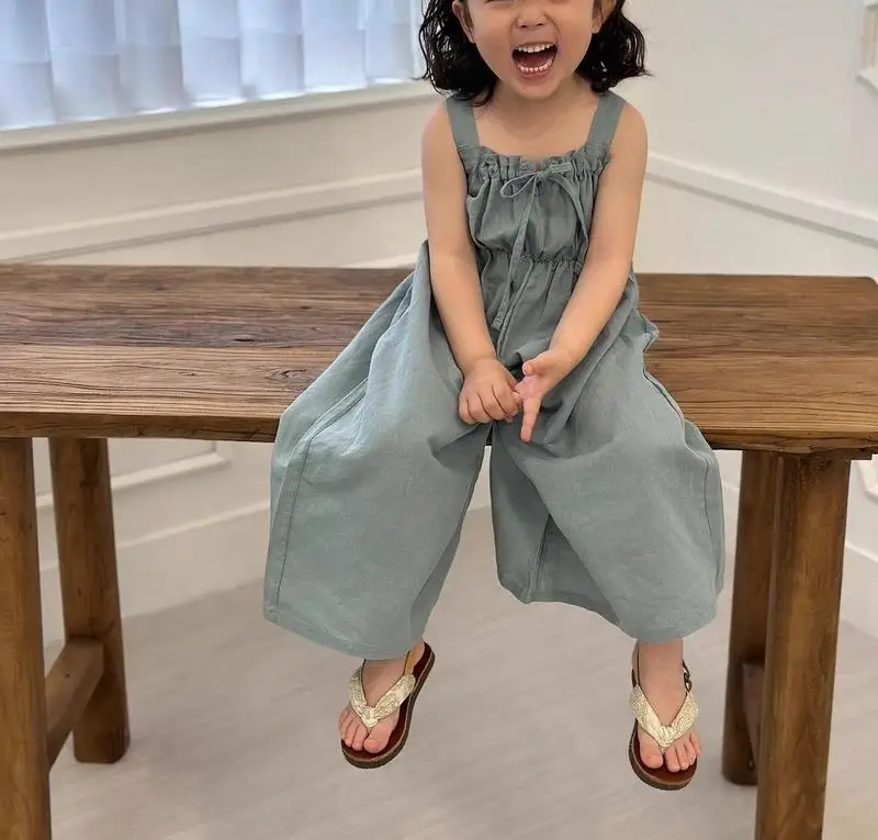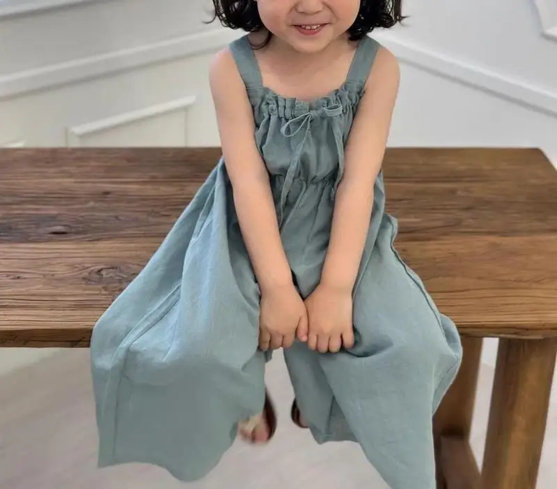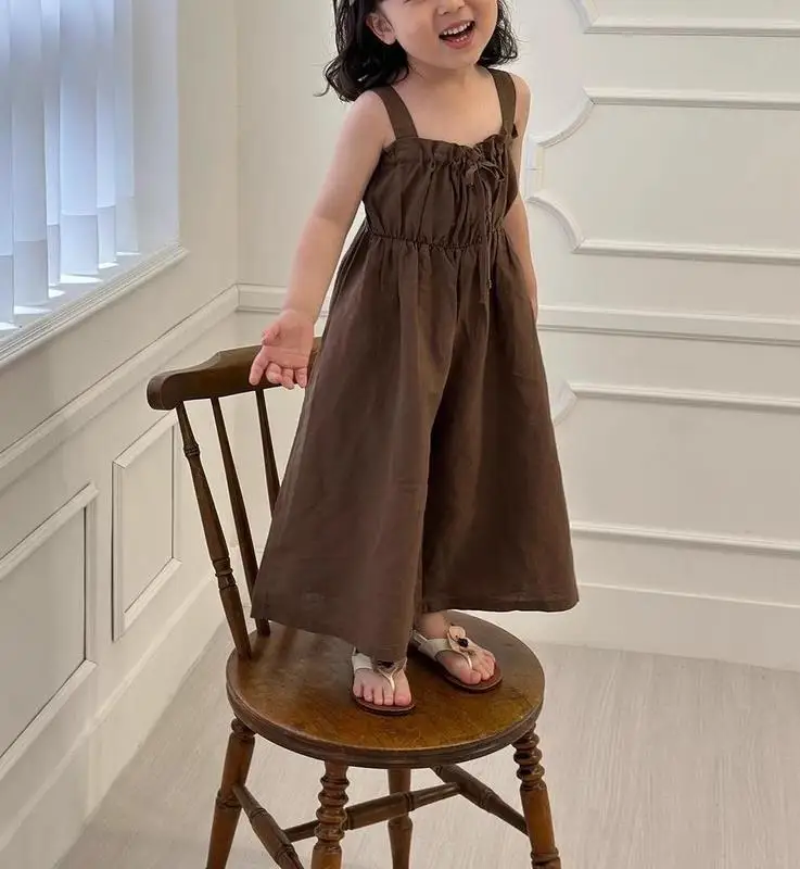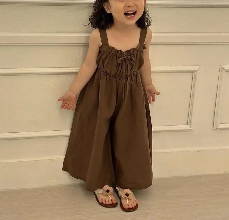 Brandon Marks 2025 Summer New Girls Jumpsuit Loose Children Wide Leg Pants Cotton Baby Girls Sling Pants Fashion Kids Clothes