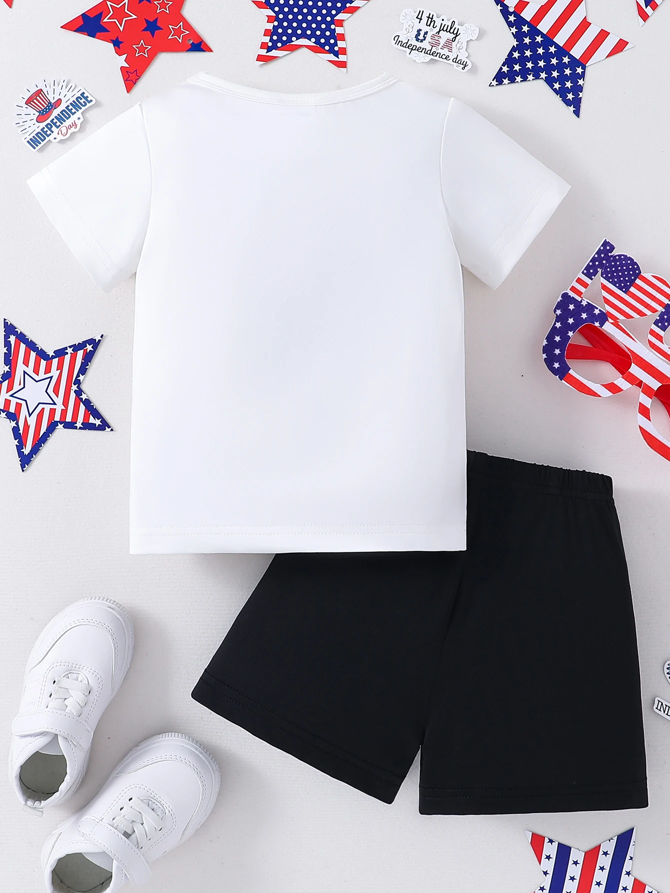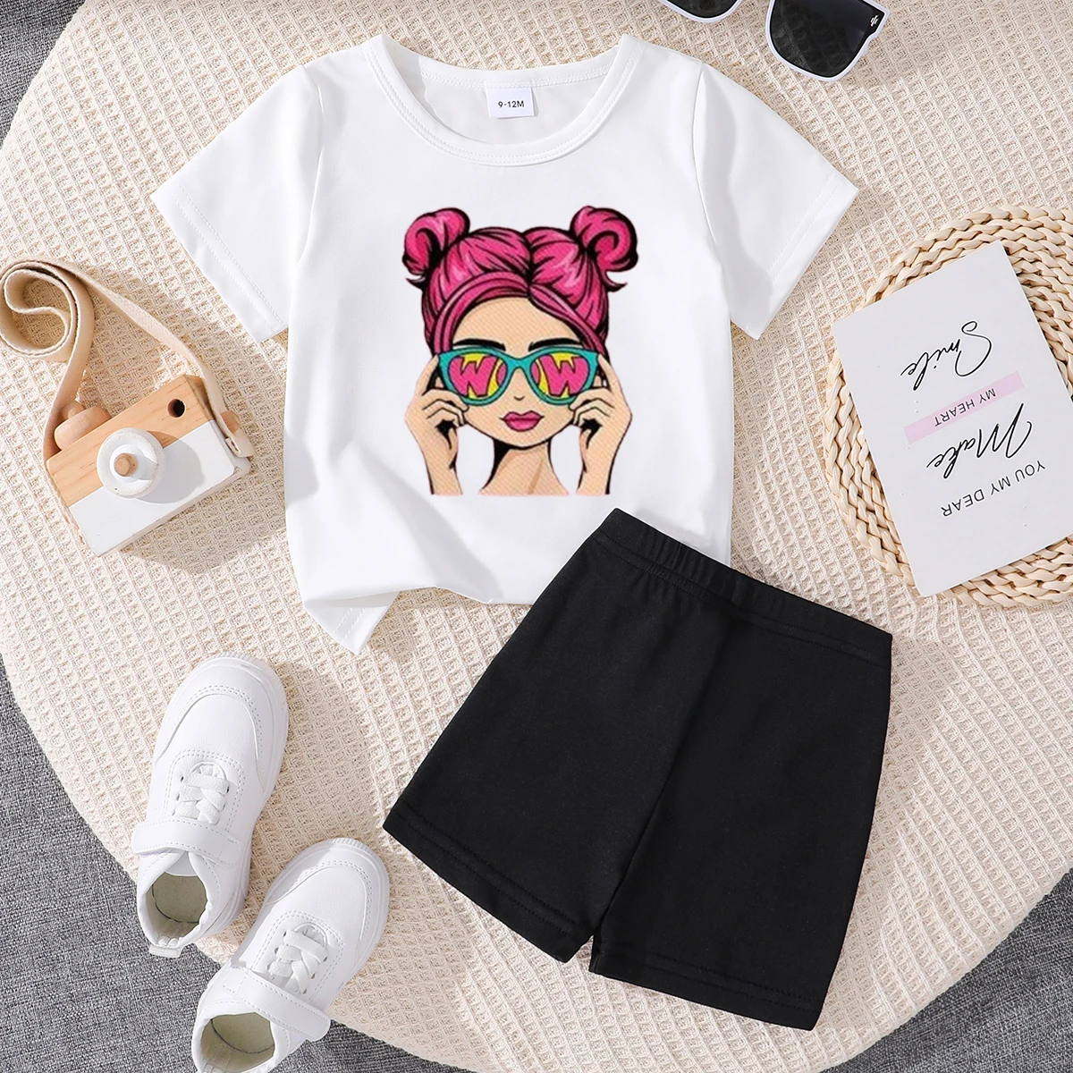 2PCS Summer Set Baby Cute Girl Avatar Top Short Sleeved Round Neck T-Shirt Casual Shorts Full Moon Festival Baby Children