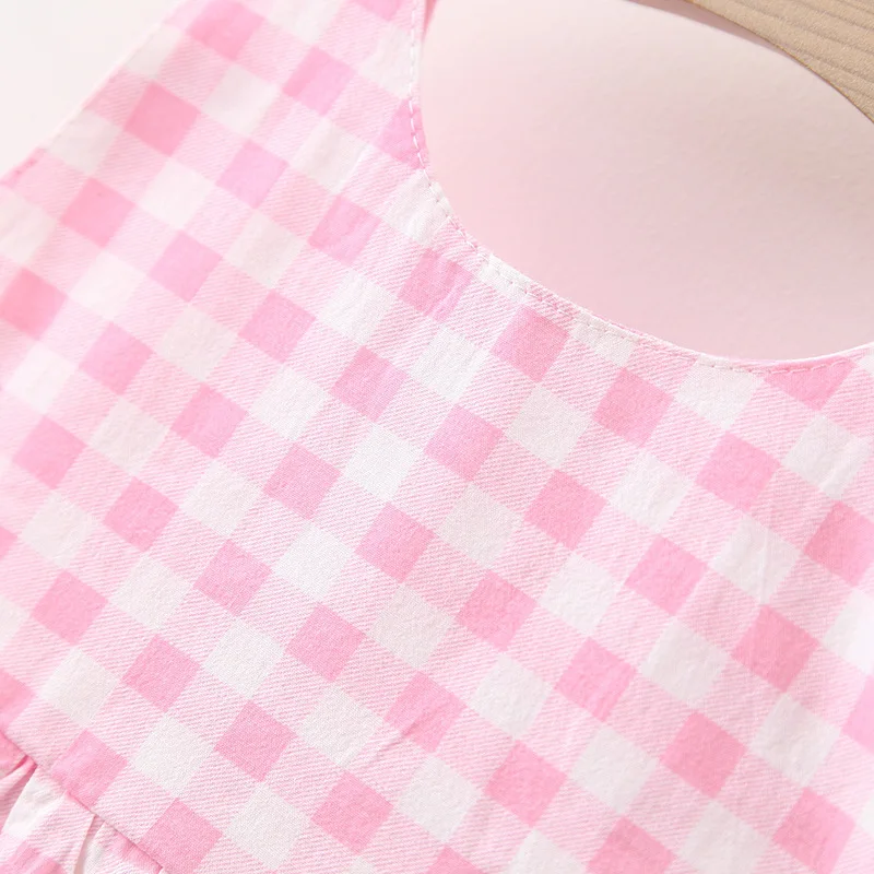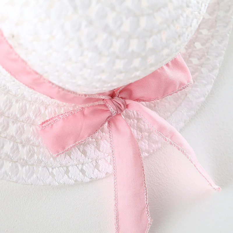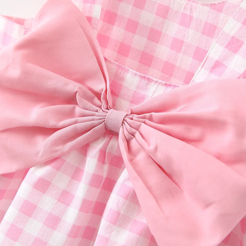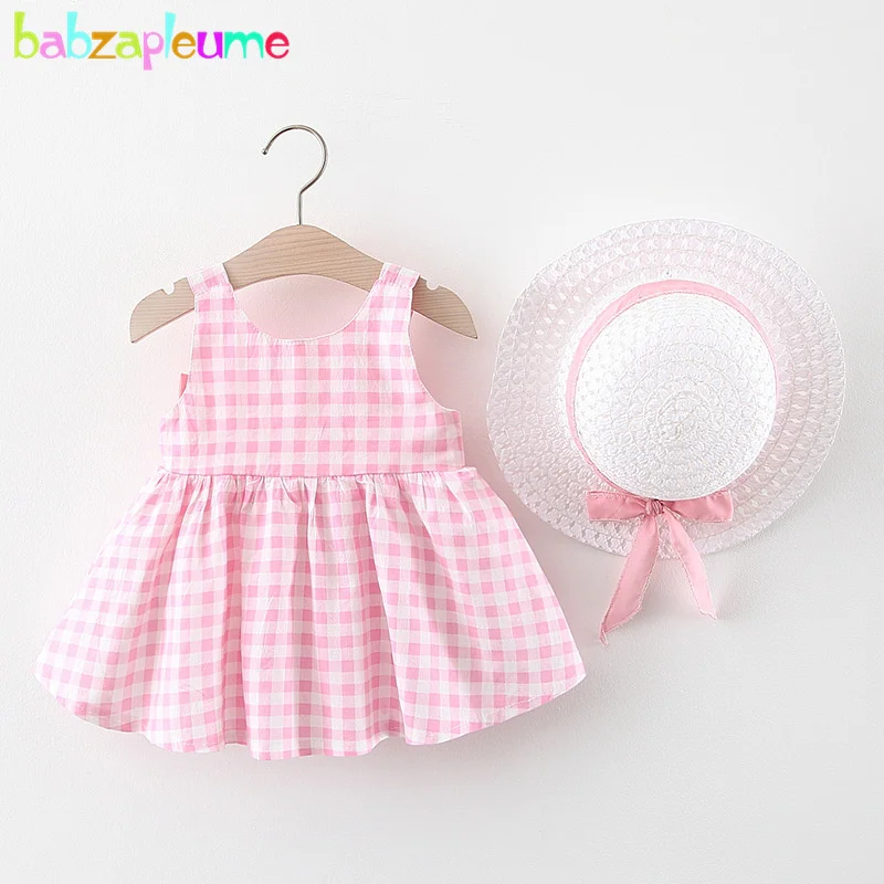 2Piece Summer Toddler Girls Dresses Korean Cute Plaid Sleeveless Cotton Big Bow Yellow Dress+Sunhat Newborn Baby Clothes BC003