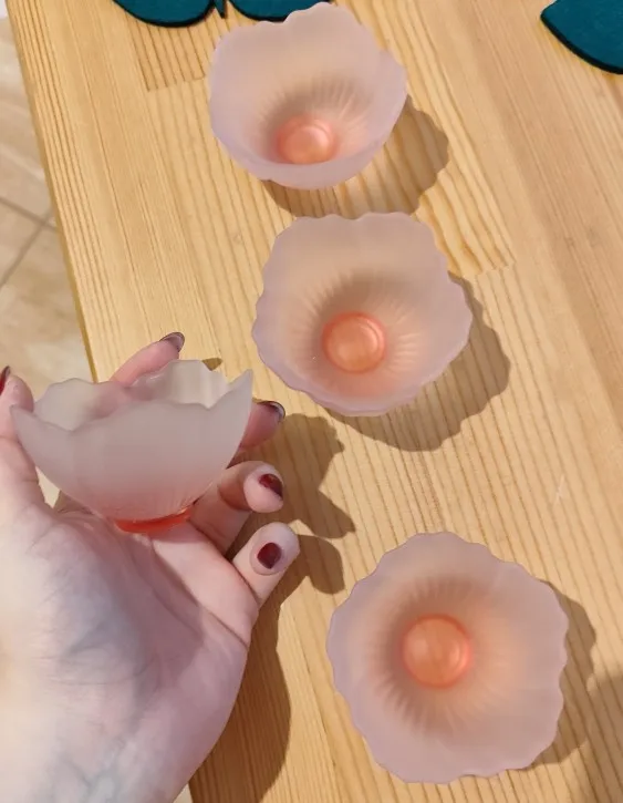 4 Pieces Glazed Glass Frosted Pink Sakura Japanese Teacup, Pink Glazed Lady, Household Flower Teacup, Tea Cup, Petal Cup