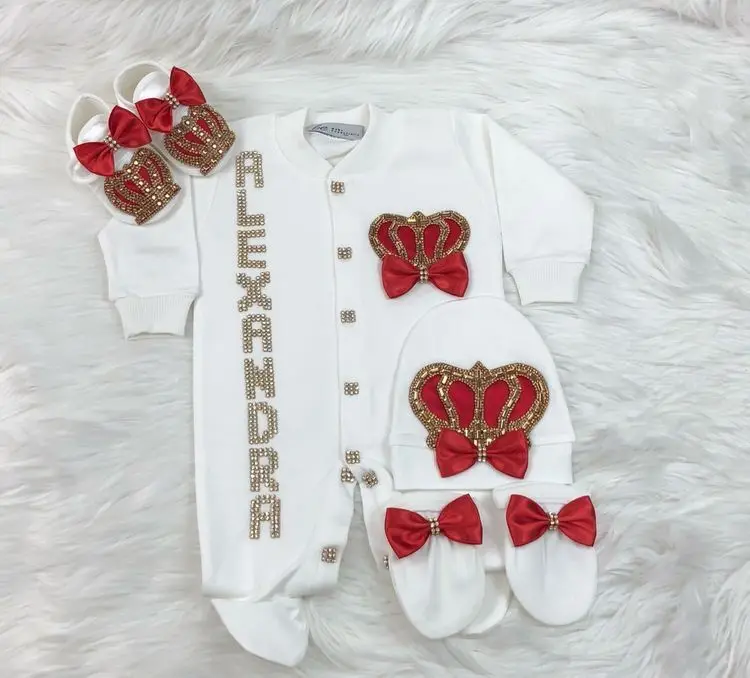 4pcs Take me Home Romper Set Baby Blanket Hat Gloves Shoes Set 39 week Pregnant Woman Photographyh Royal Crown Jewelry Suit