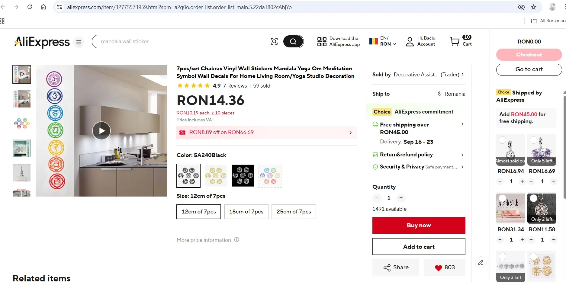 7pcs/set Chakras Vinyl Wall Stickers Mandala Yoga Om Meditation Symbol Wall Decals For Home Decoration