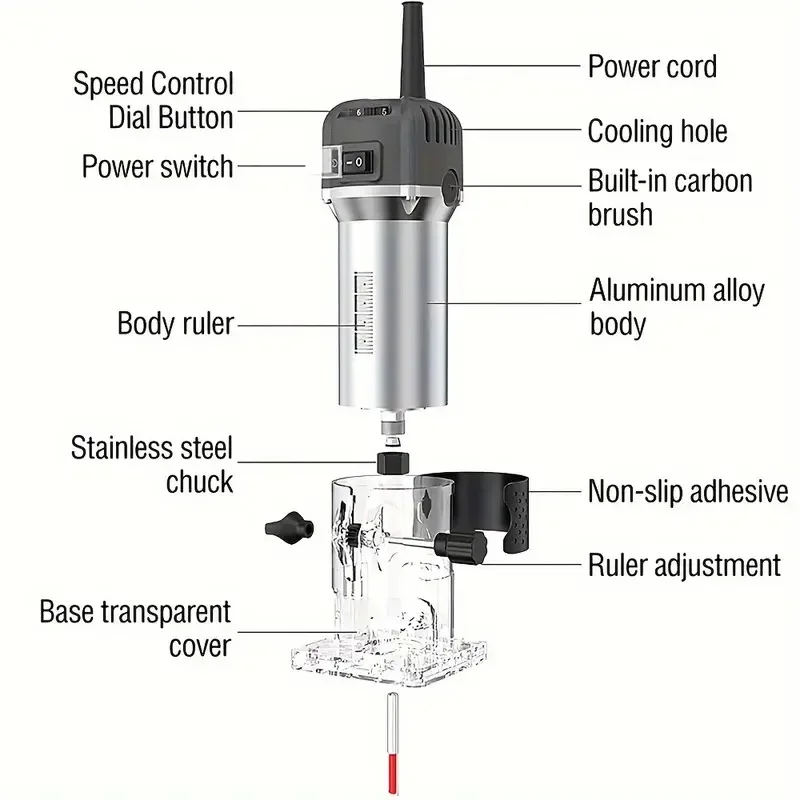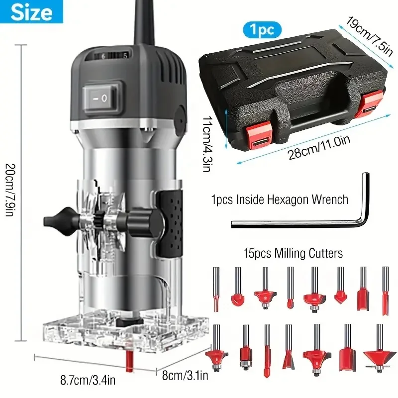 800W Electric Trimmer Wood Milling Trimming Engraving Slotting Machine 33000r/min Woodworking Router Milling Machine Power Tool