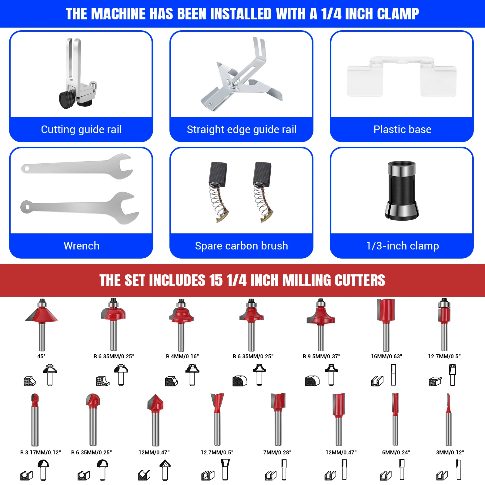 【Router Bit Set 15pcs】1/4 inch shank tungsten carbide router bits provide greater stability and less vibration during use,and comes with sturdy plastic case to help you keep them organized and safe storage.