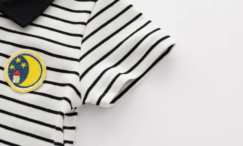 Baby boy preppy style jumpsuit stripesd jumpsuit summer newborn baby clothes summer handsome and stylish thin pure cotton short-