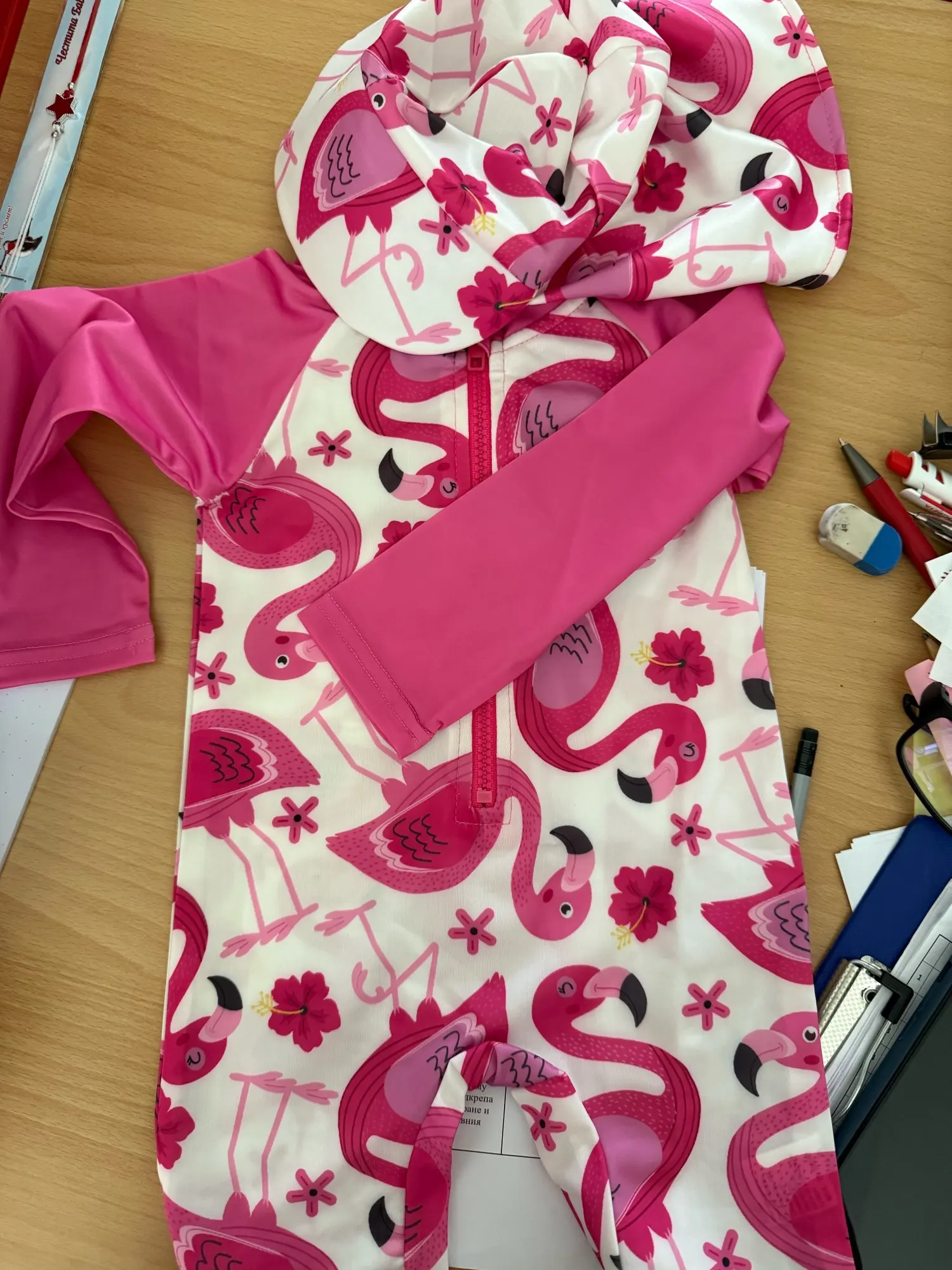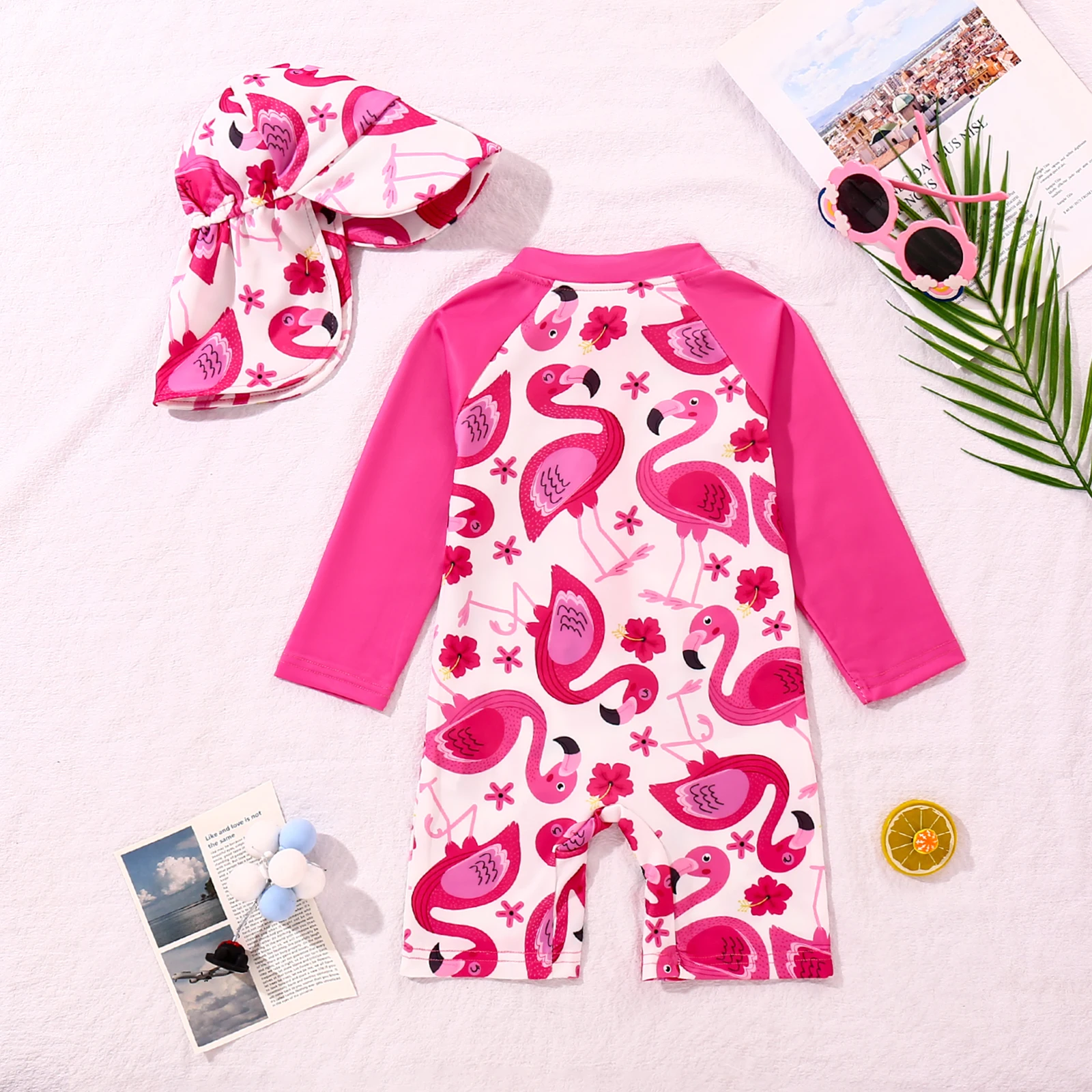 Baby Boys And Girls Cartoon Cute Full Printed Long Sleeved One-Piece Swimsuit + Swim Cap