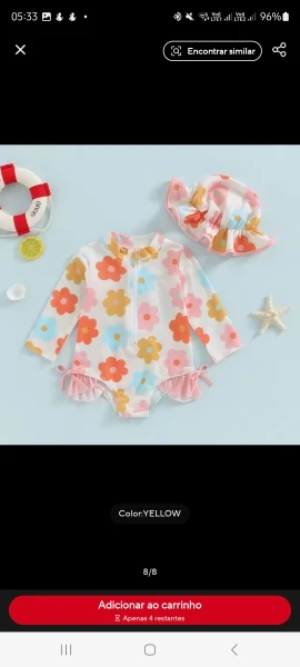Floral print, long sleeves and round neck, front zipper, ruffled hem, and sun hat set will surely make your little one stand out in the crowd! Little girl swimsuit is sweet and cute summer beachwear for baby girls.