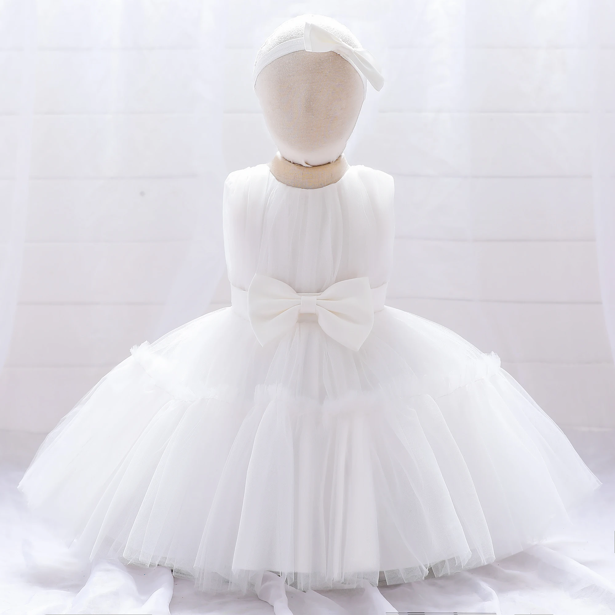 Baby Pleated Girl Princess Dress Outfit Infant White 1st Birthday Baptism Dress Toddler Bow Party Wedding Prom Gown Baby Clothes