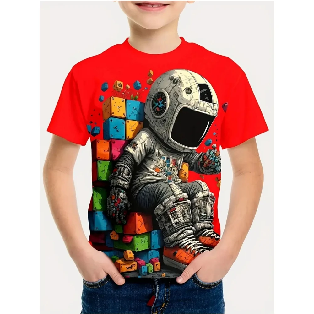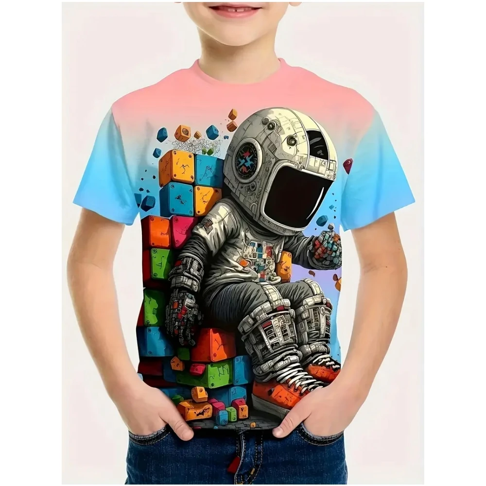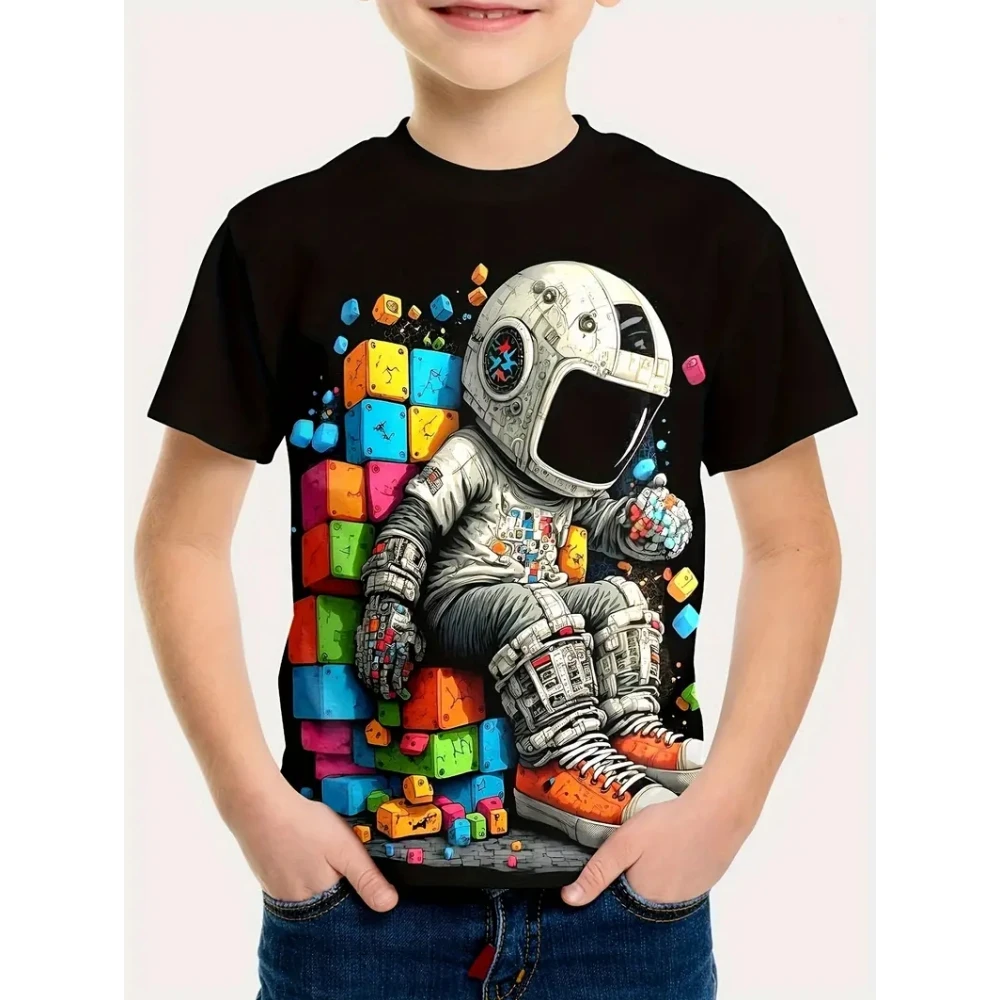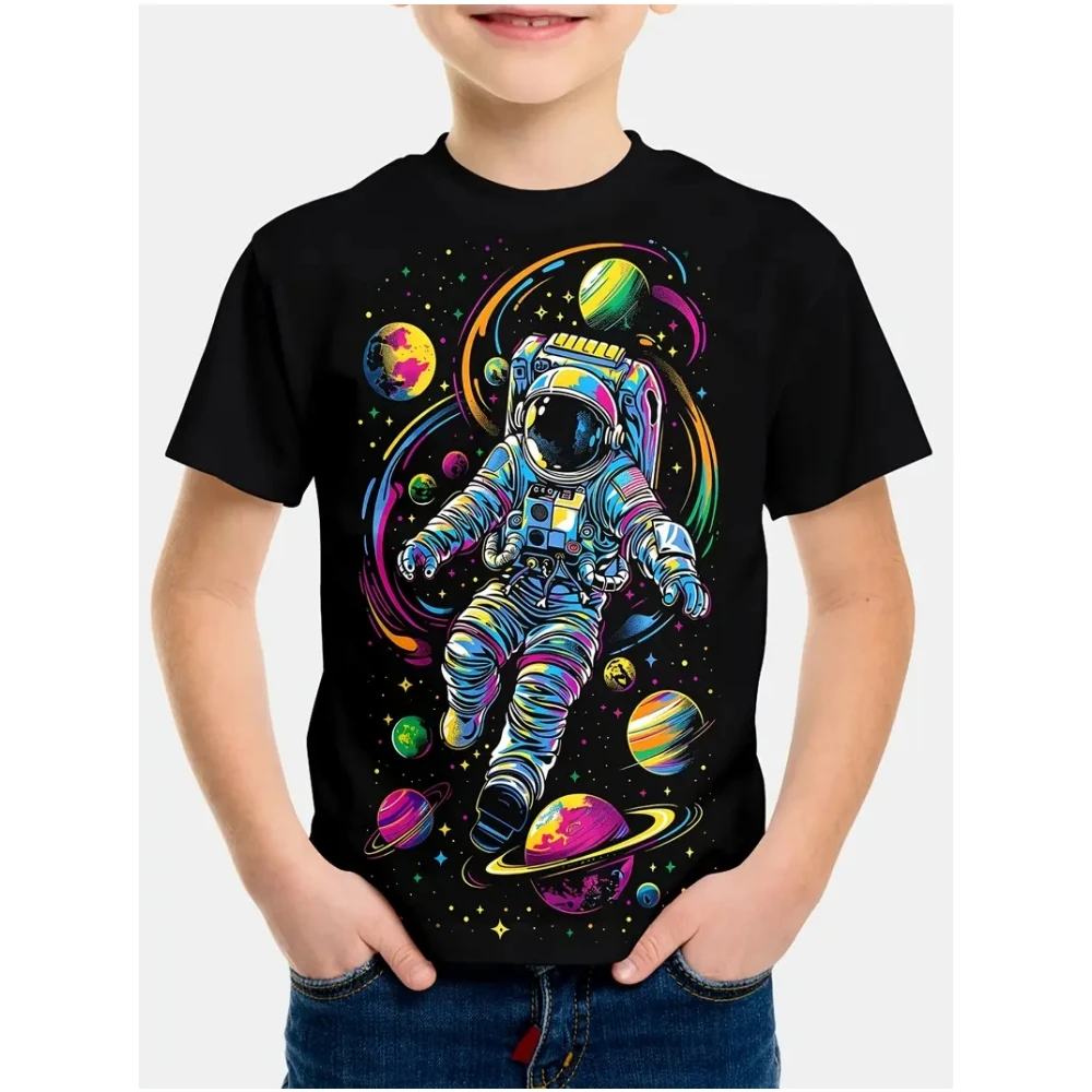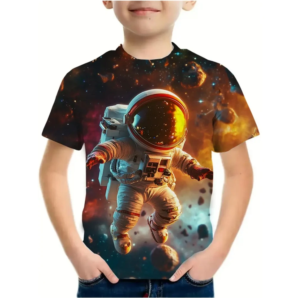 Boys Kids Clothes Stylish Cartoon Space Astronaut Graphic T Shirts Boys Girls Summer Short Sleeve Outdoor Clothes for Children