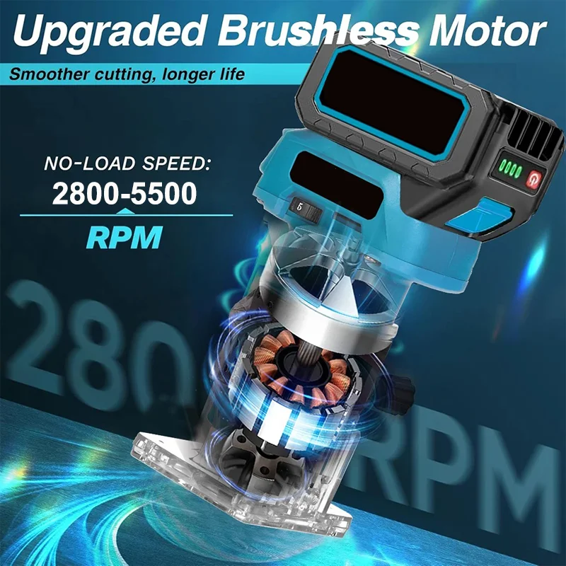 Brushless 5 Speed Wood Router Tool Cordless Milling Engraving Slotting Machine Woodworking Trimming Machine for Makita Battery