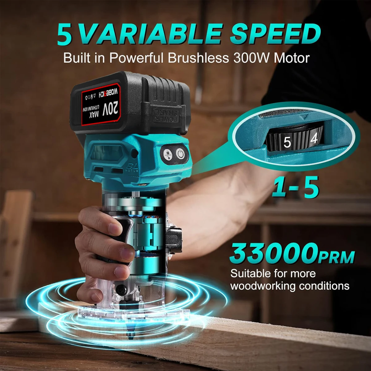Brushless Cordless Milling Engraving Slotting Machine Speed Adjustment Woodworking Trimming Machine Wood Router Tool for Makita