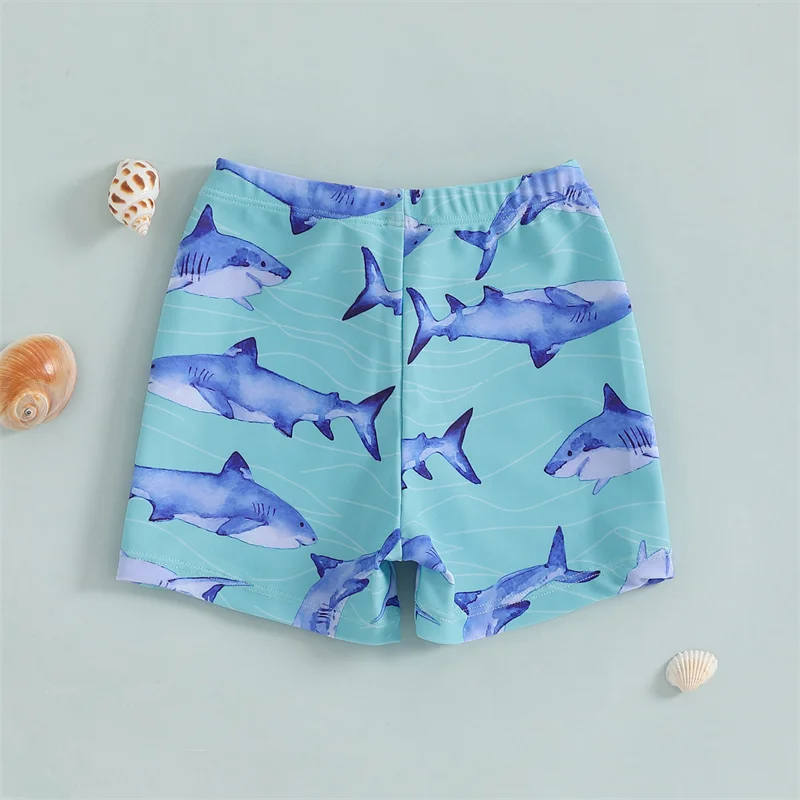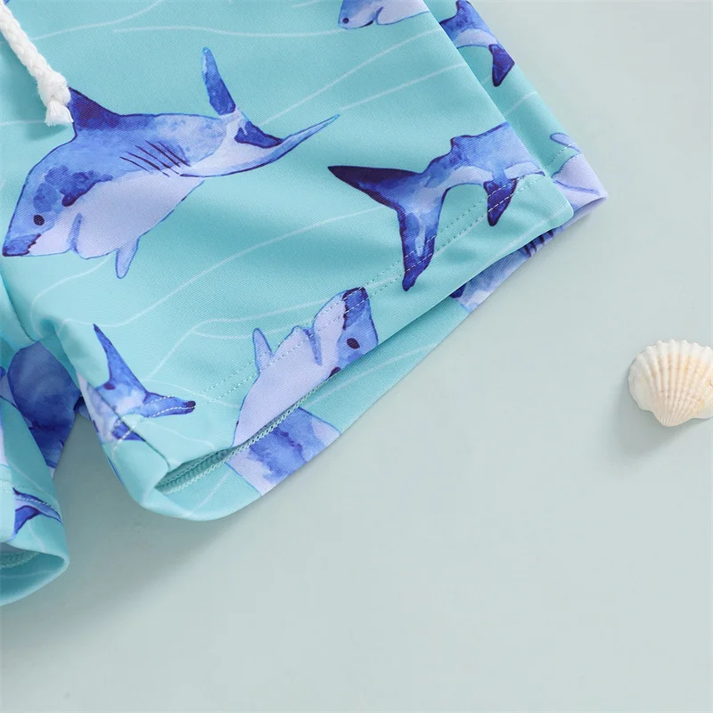 Little Boys Swimsuit Shorts Cartoon Dinosaur/Shark Print Bathing Suit Drawstring Swim Trunks