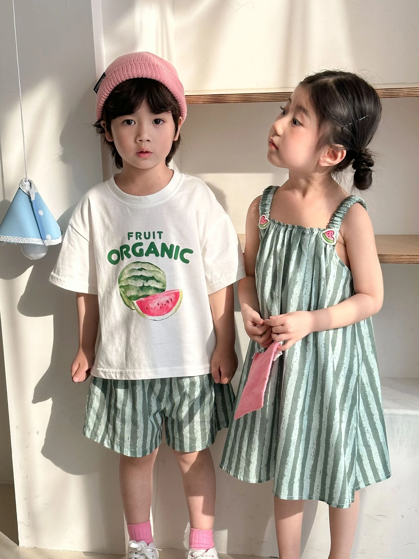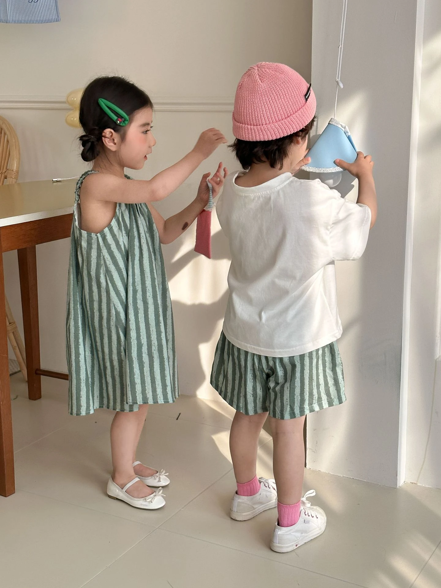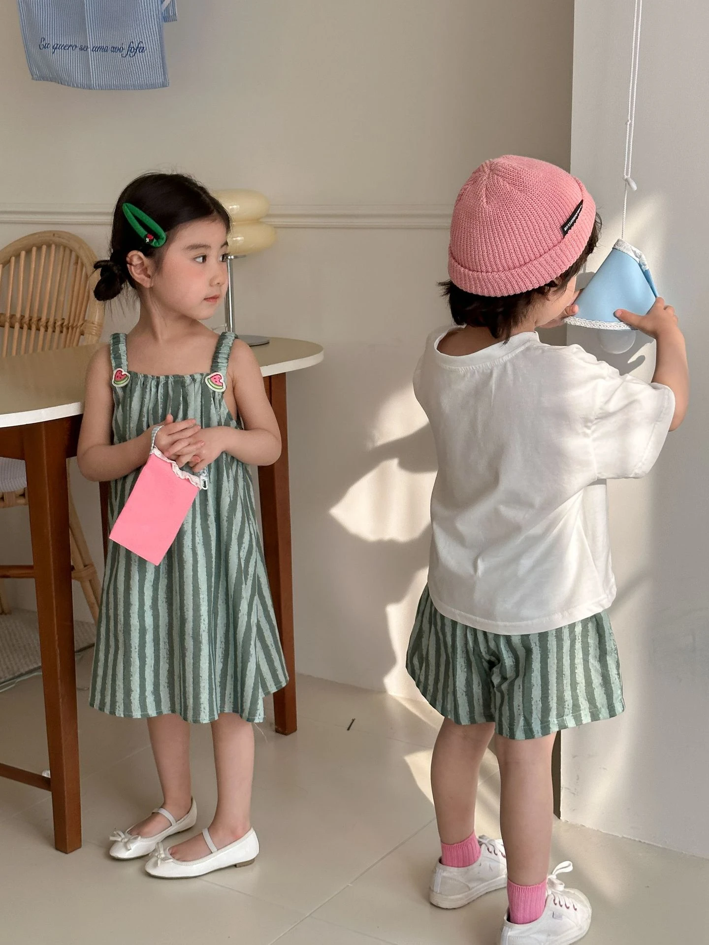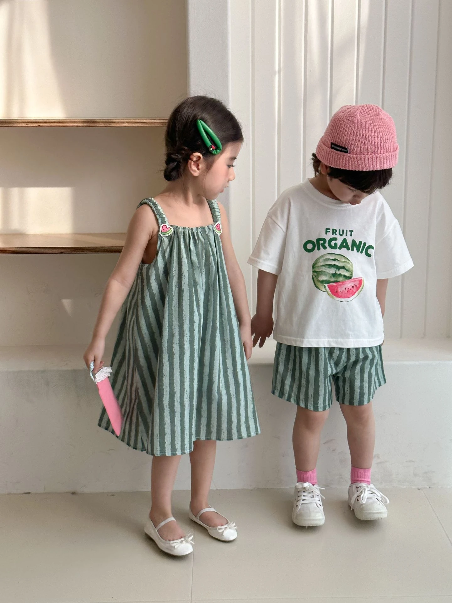 Children Clothes 2025 Summer New Cotton Stripe Baby Girl Suspender Dress Or Boy's Suit Brother And Sister Clothes