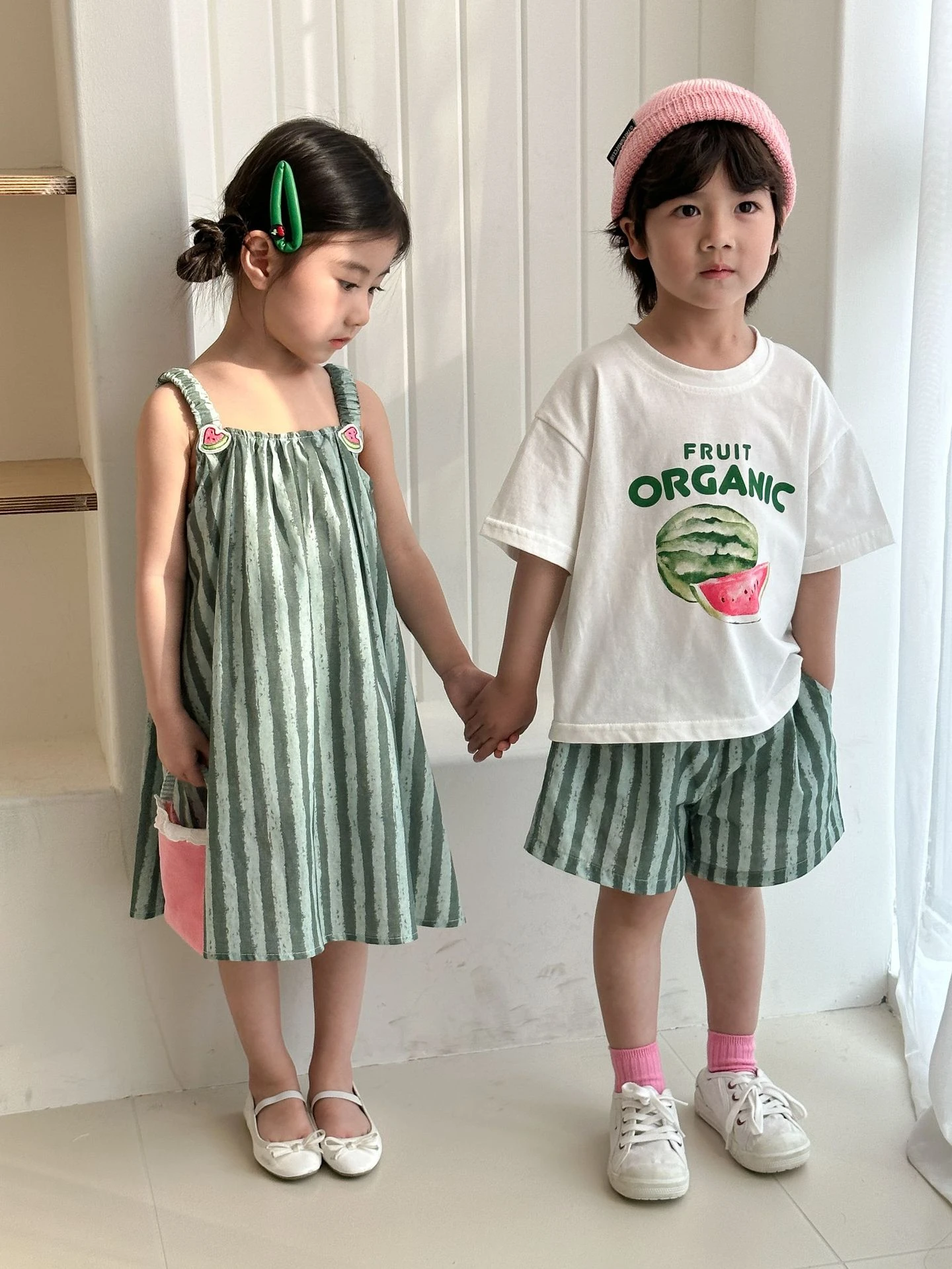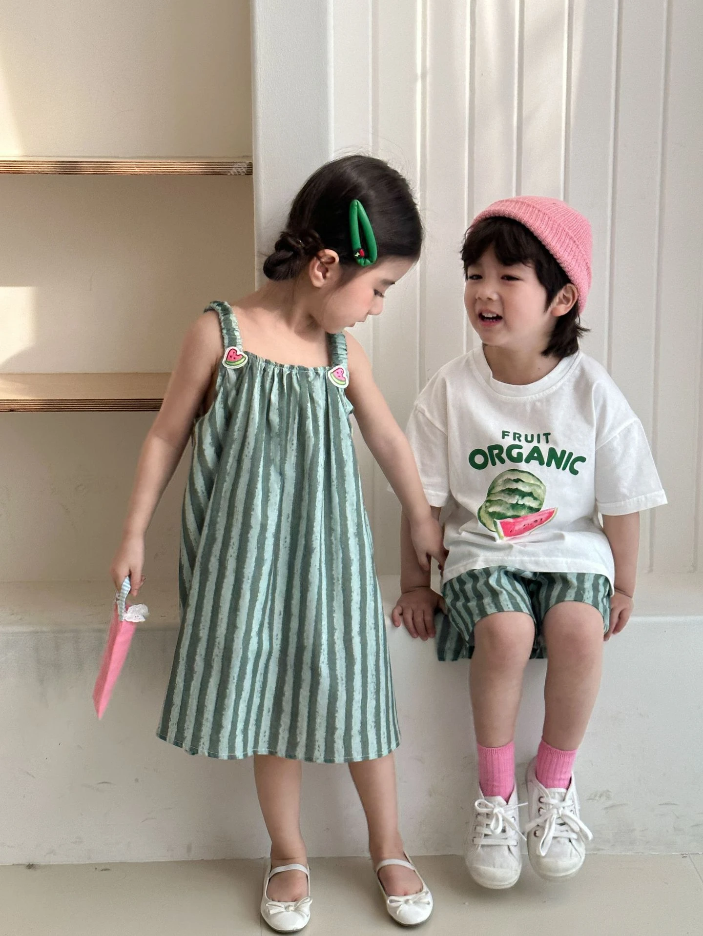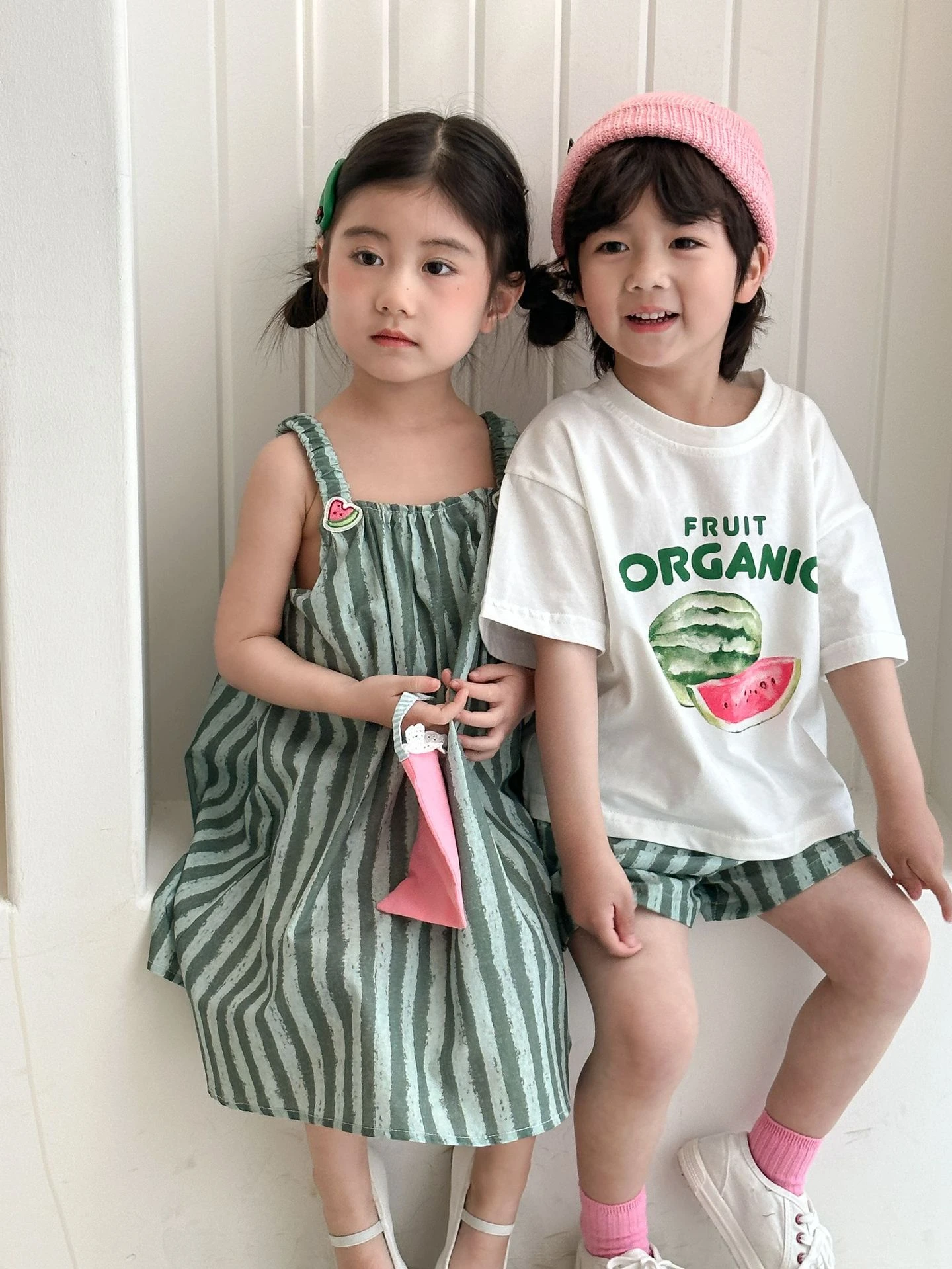 Children Clothes 2025 Summer New Cotton Stripe Baby Girl Suspender Dress Or Boy's Suit Brother And Sister Clothes
