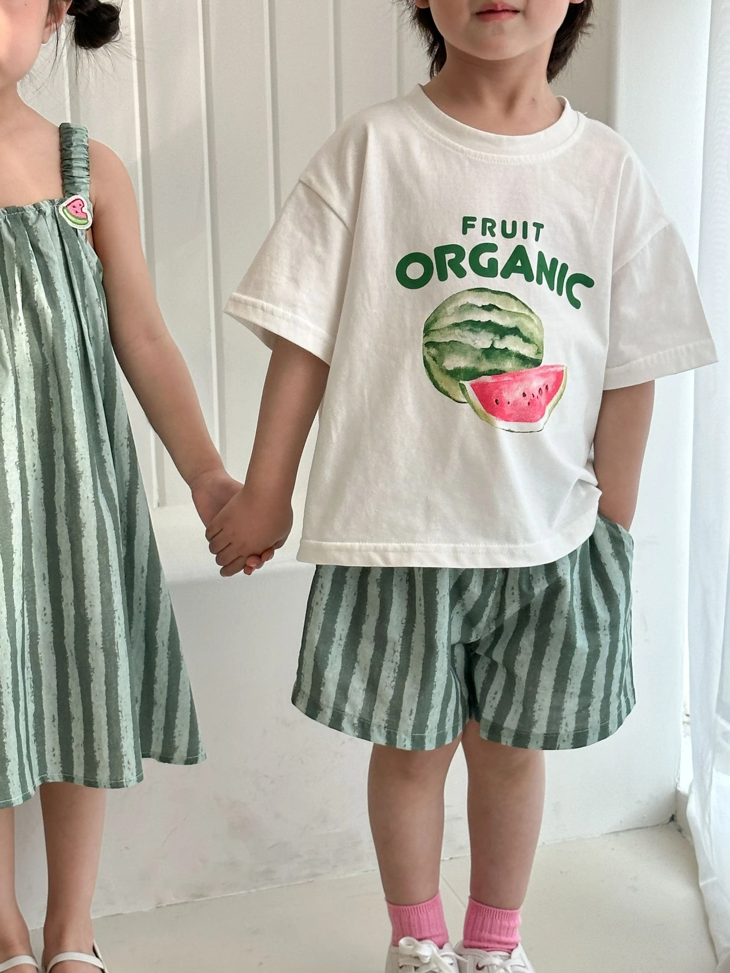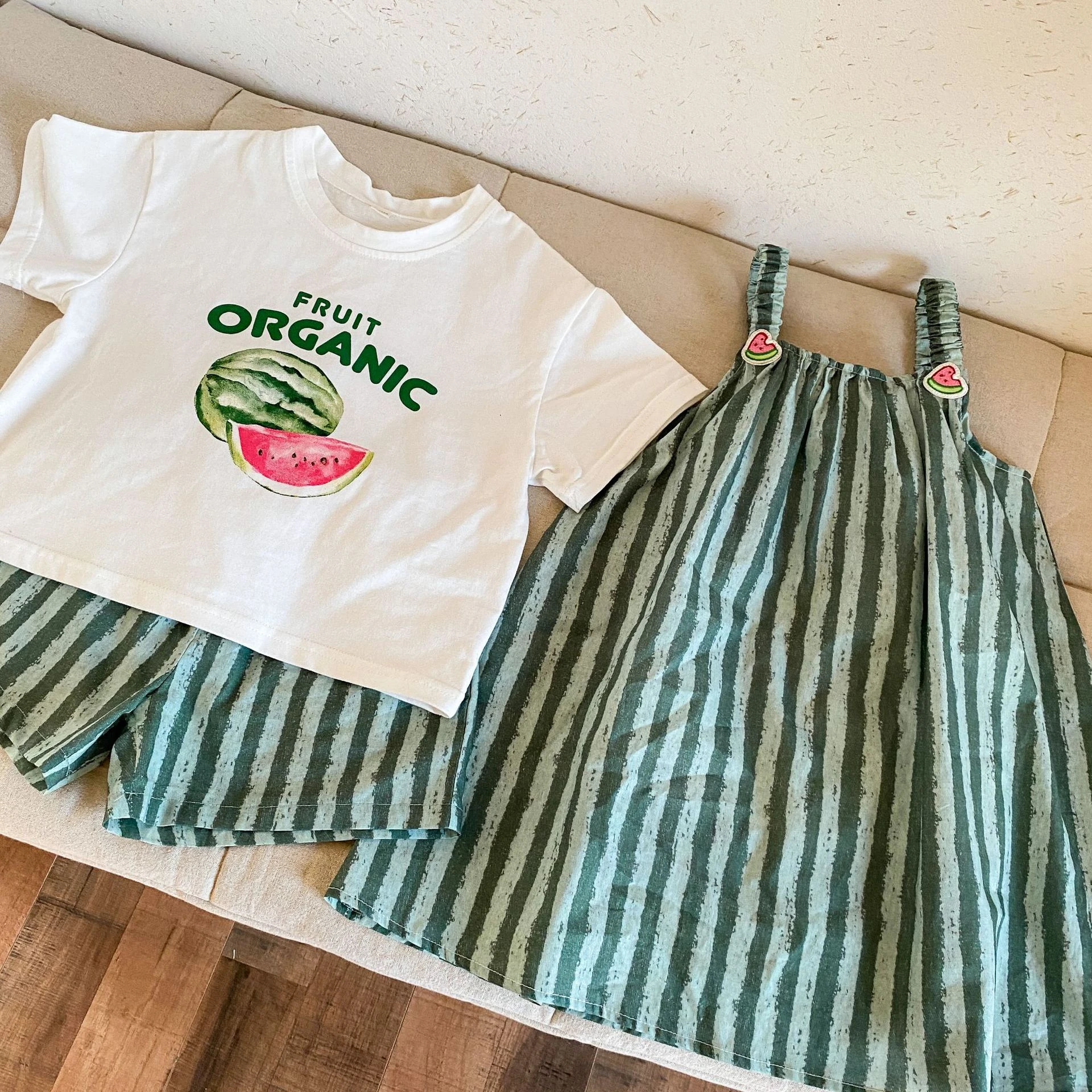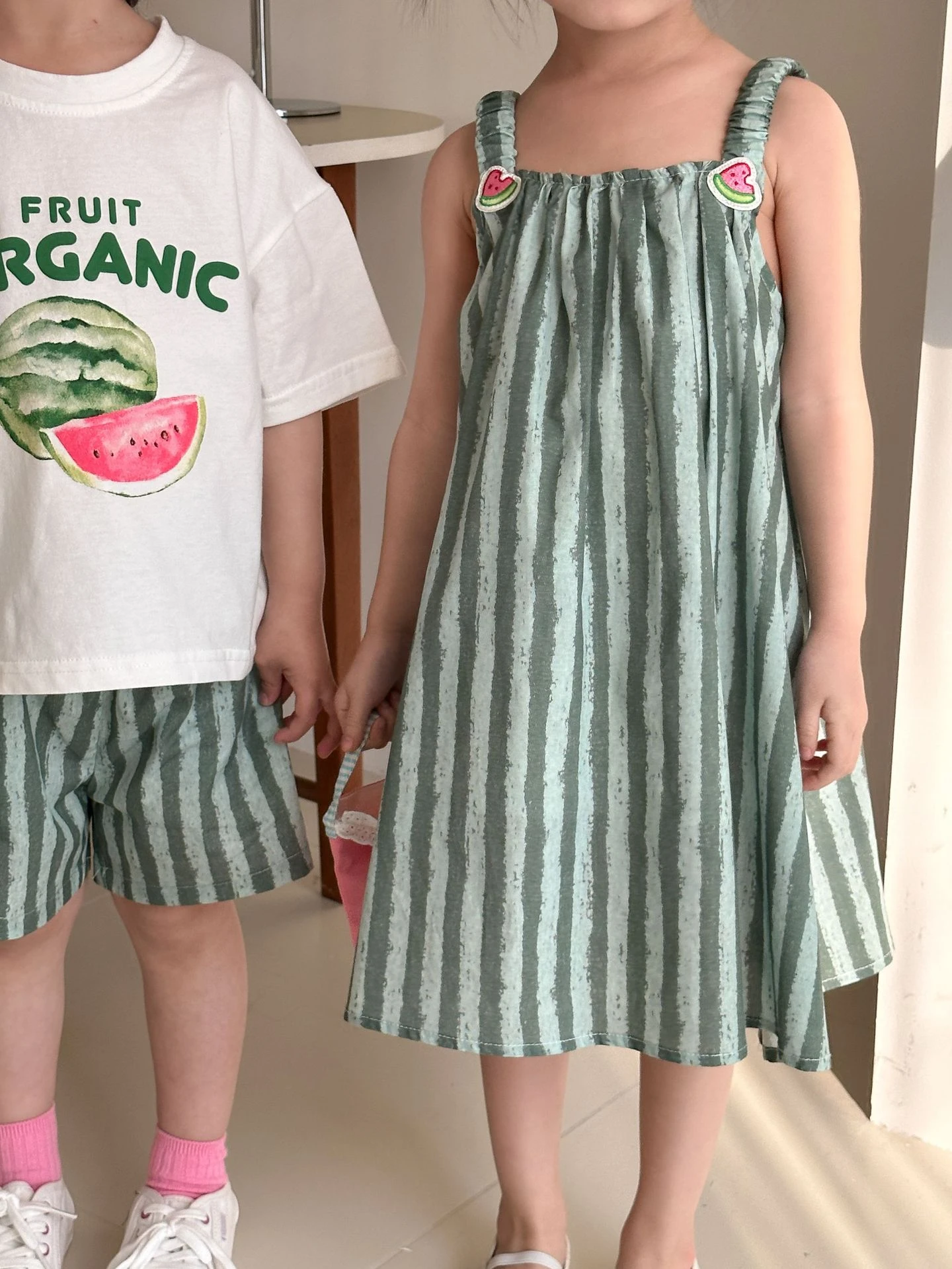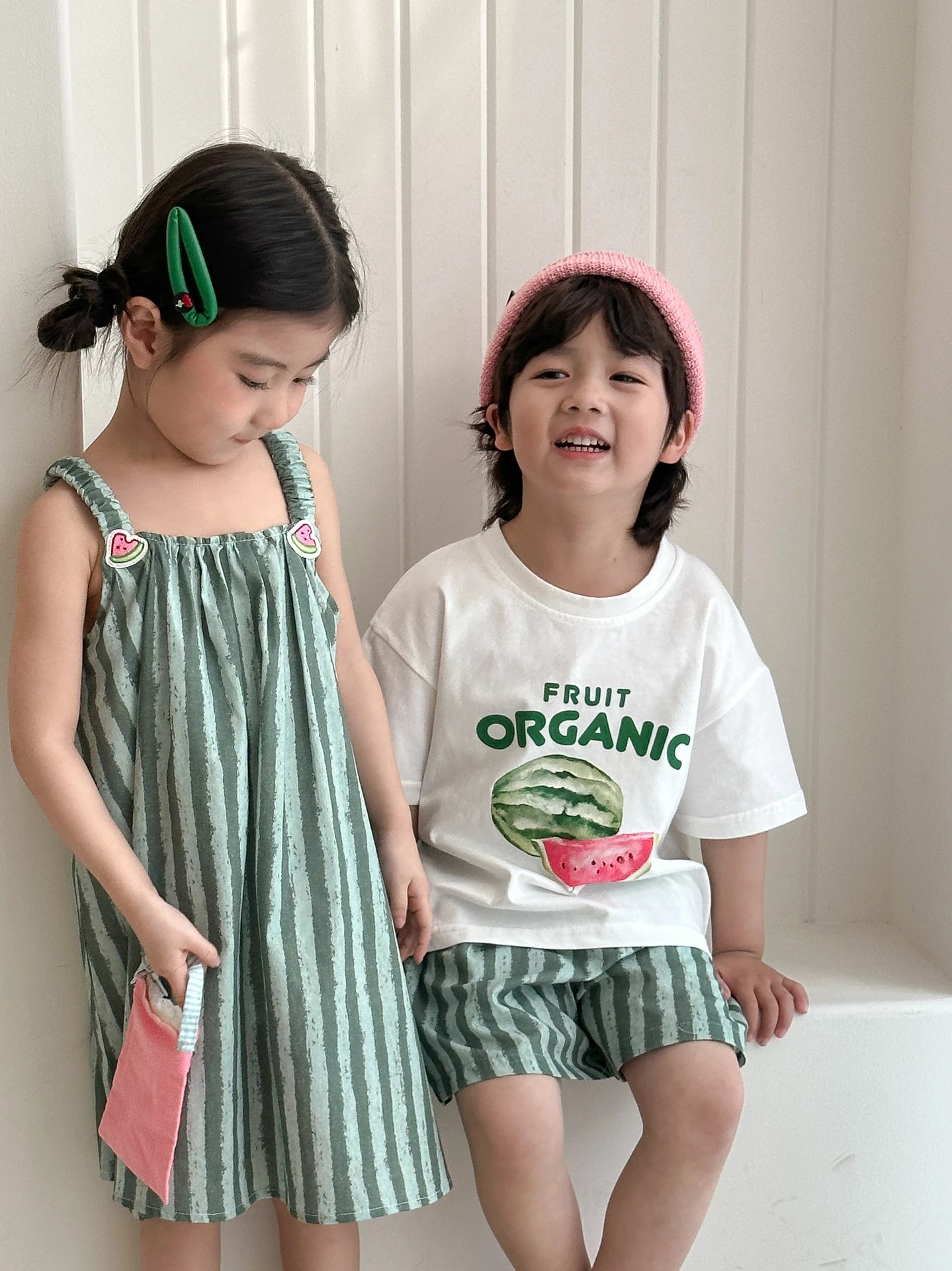 Children Clothes 2025 Summer New Cotton Stripe Baby Girl Suspender Dress Or Boy's Suit Brother And Sister Clothes