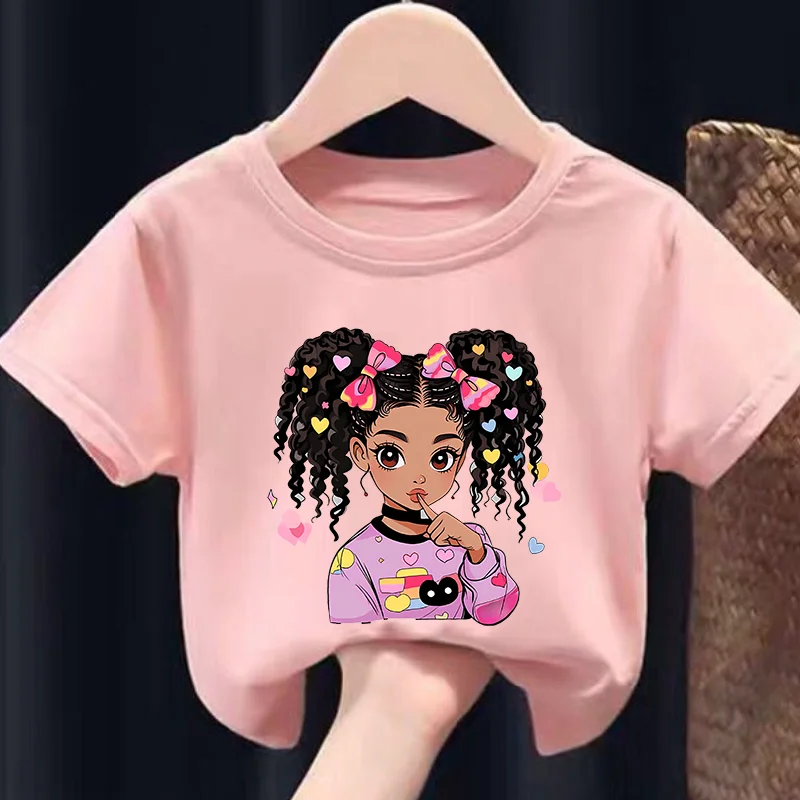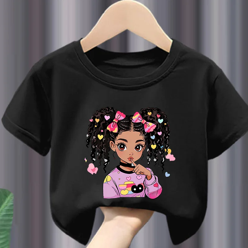 Colorful Cute BLACK GIRL Print Girls Soft and Stretchy Round Neck Short Sleeve T-shirt Kids Clothes Clothes Girls Clothes Bs