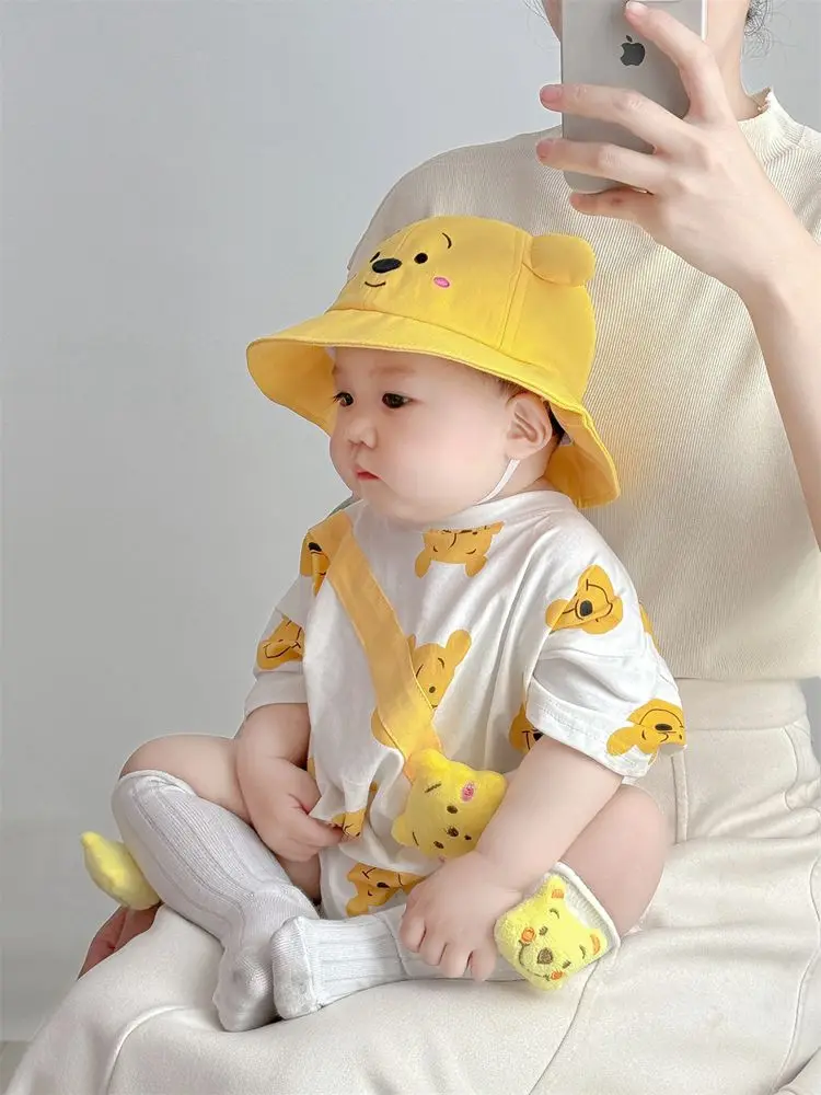 Disney Newborn Baby Romper Sock Hat 3 Pcs Set Boy Girl Cartoon Winnie the Pooh Donald Daisy Duck Cotton Jumpsuit Infant Bodysuit