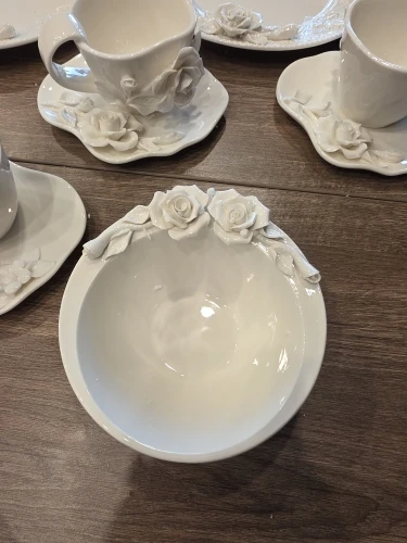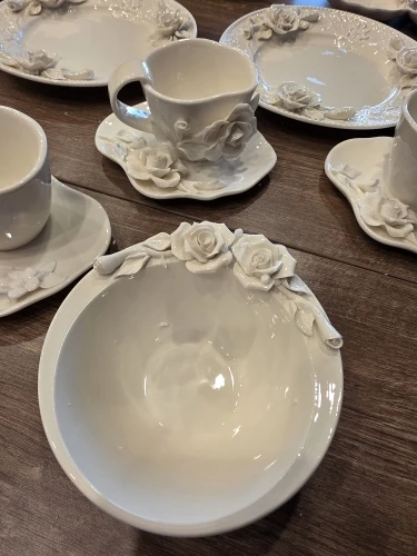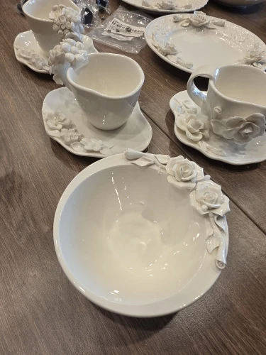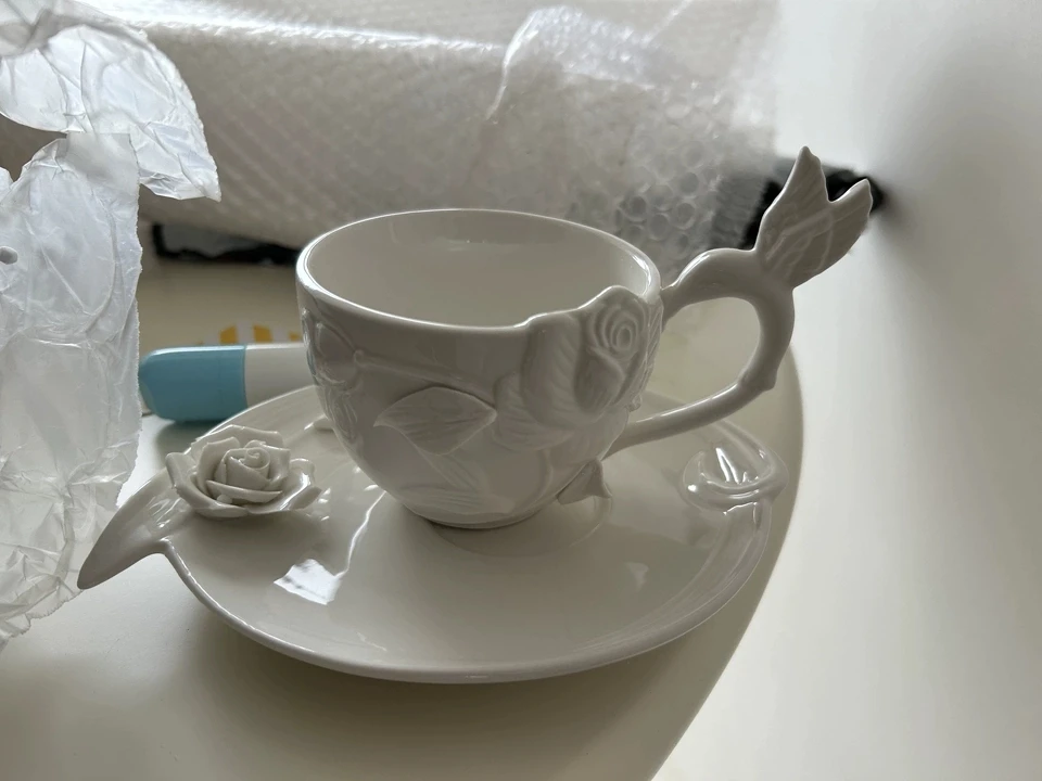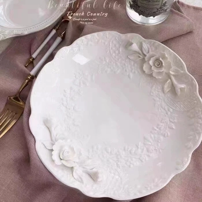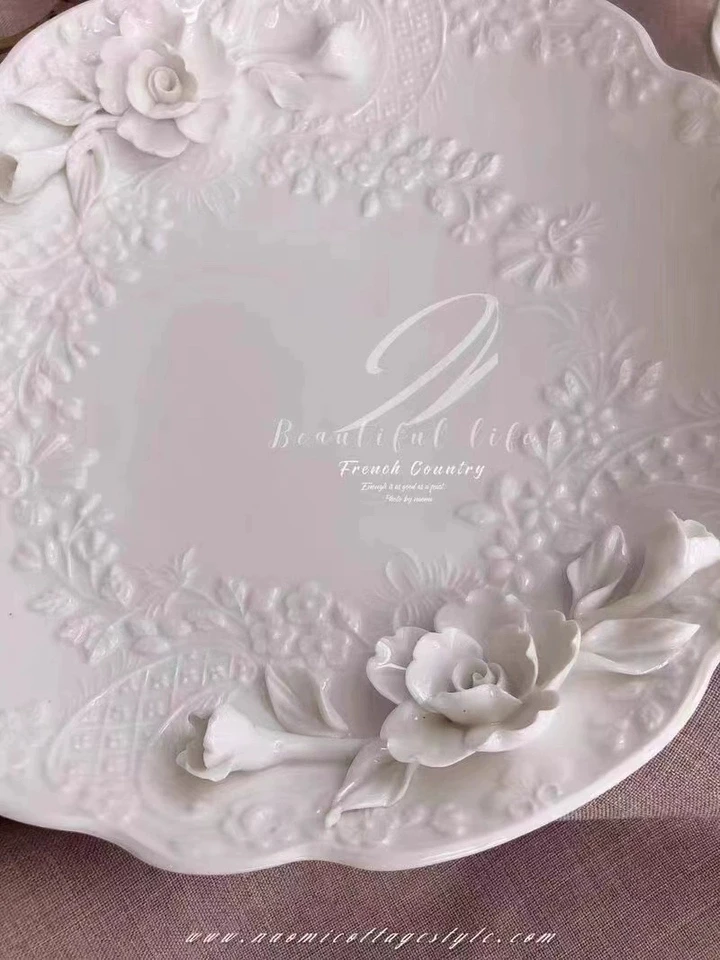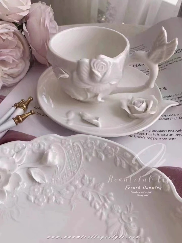 European Relief Hand Held Flower Bowl, Plate, Cup And Tableware Set For Home Afternoon Tea, Exquisite Ceramic Display Plate