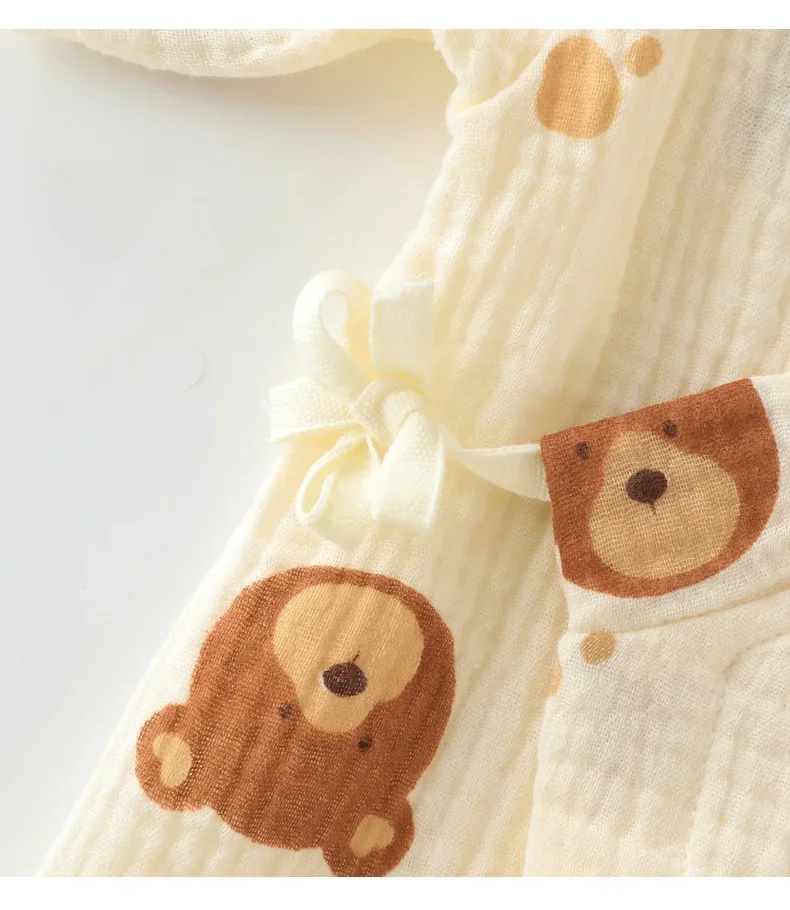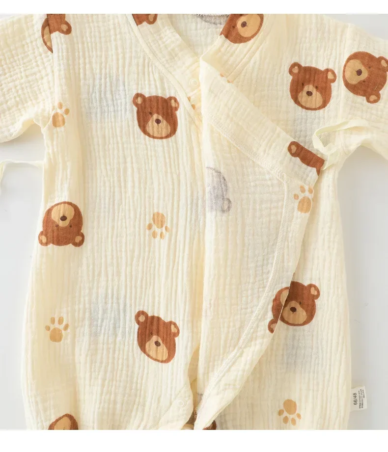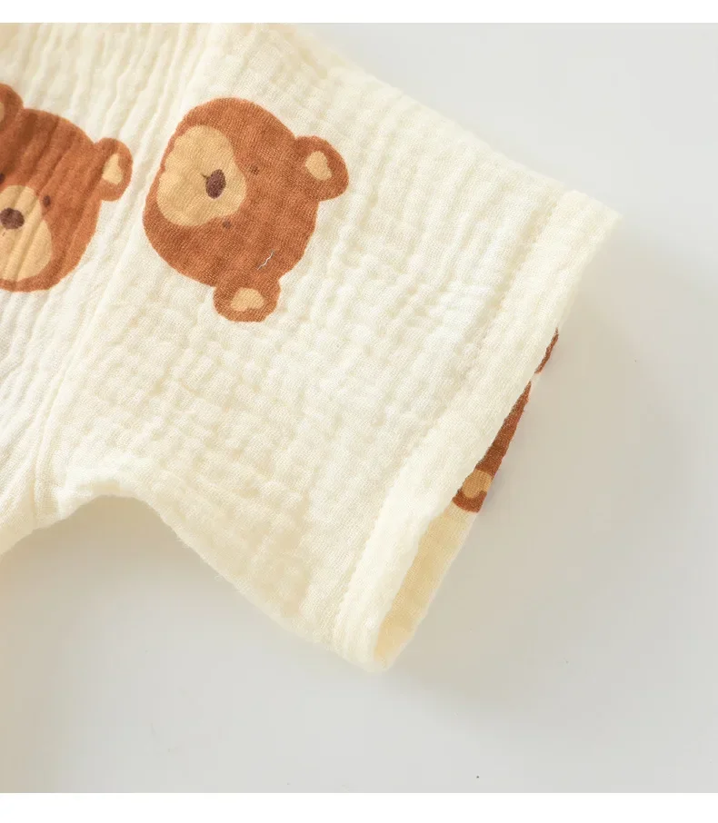 Girls Baby Summer Short-sleeved Jumpsuit Kids Gauze Cotton Full Print Romper Clothes Newborn Pajamas 0-18M