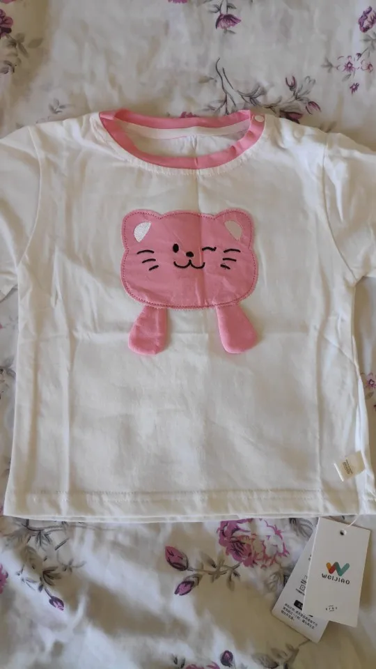 Girl's Cartoon T-shirt 2025 New Summer Baby Patch Cat Base Shirt Thin Children's Western Korean Edition Summer Dress