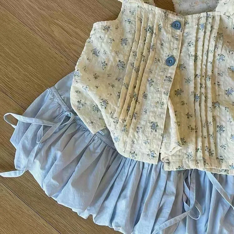 Girls' Summer Clothes Set 2025 New Korean Style Children's Fashion Floral Print Vest+ Skirt for Girls Baby Fashion Two Piece Set