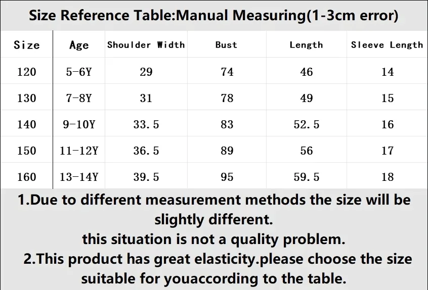 ❤【Different Sizes of T-shirts】120-160 is child size.We have Multiple sizes for you to choose which can meet the needs of the vast majority of people.(Please noted that the size is smaller than the normal size. Please order one size up if your child are taller, stronger, or grows faster.)