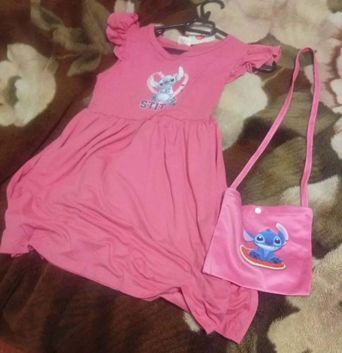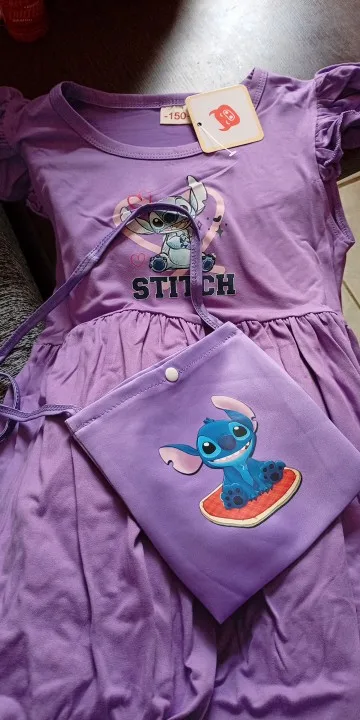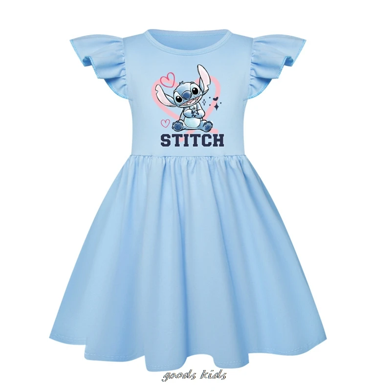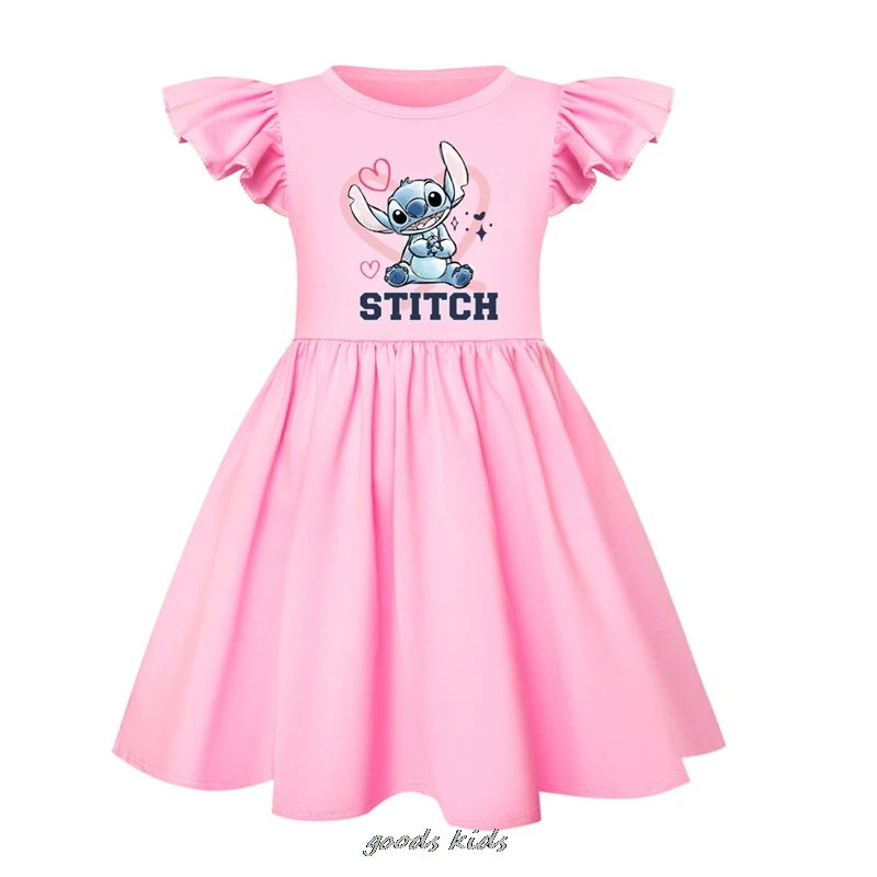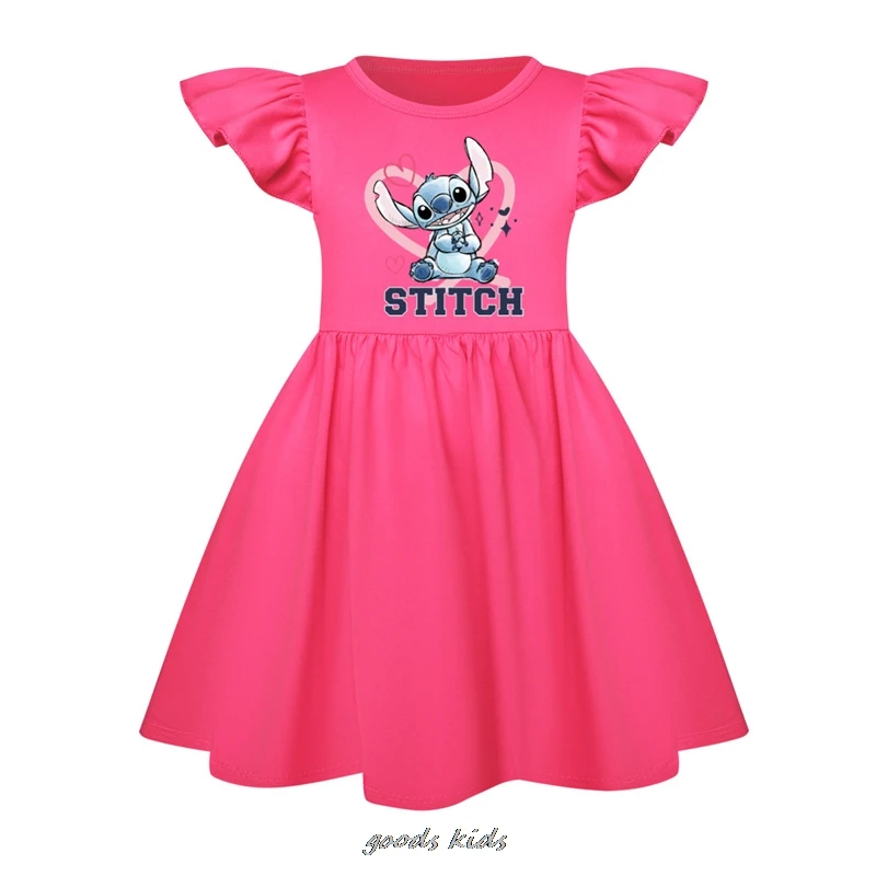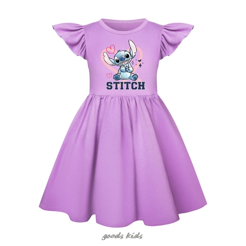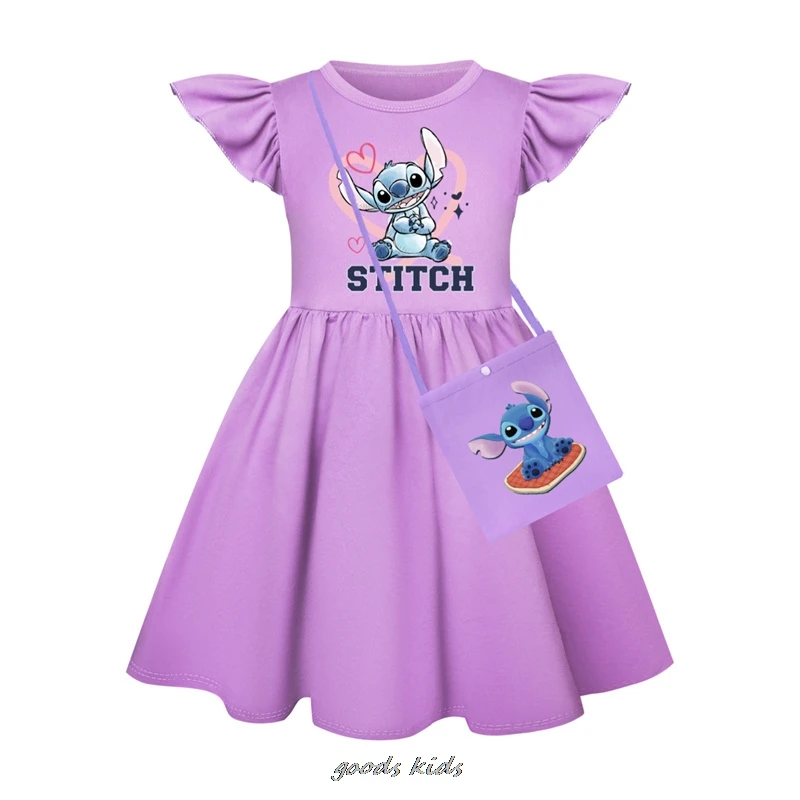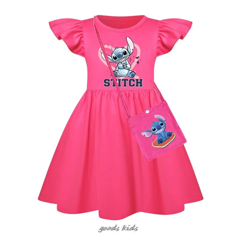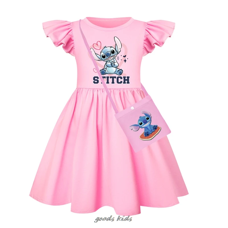 Hot Lilo And Stitch Flying Sleeve Girls Colorful Dress And Bag Summer Kids Party Dresses Children Clothing Vestidos Outfits