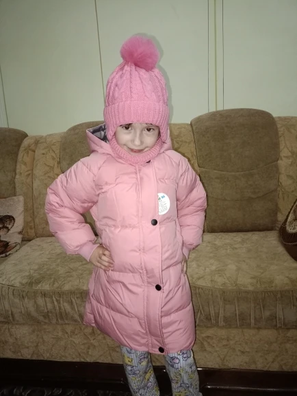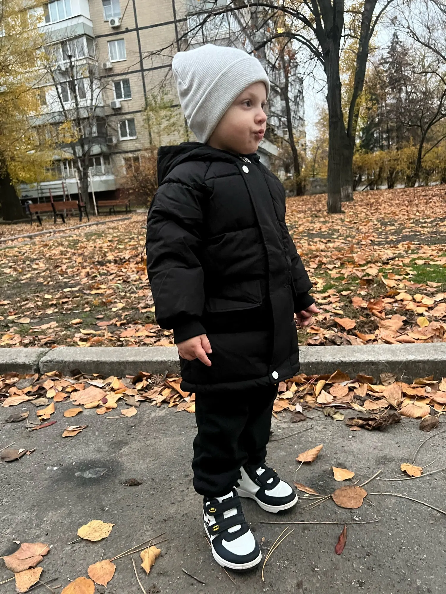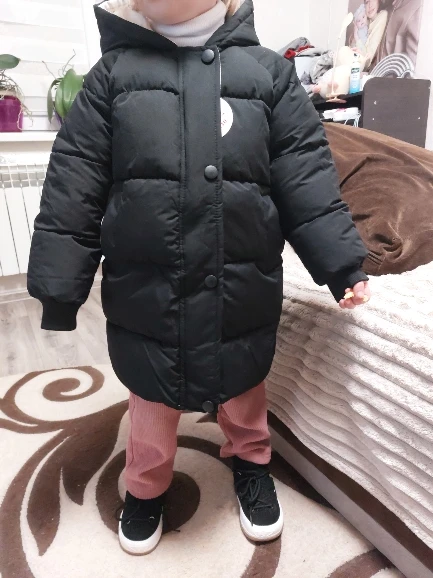 Didn't have to wait long, via Ukrainian Post. For height 125 (6 years old) I took 140, as you can see there is a good stock. Thick filling. Inside without lining. It seems that the Ukrainian winter will definitely pass easily. Thank you. The price is pleasant, slightly over 600 UAH. We are Glad:) The season is passing, if worn carefully. There will be a surplus for next winter. The zipper is wide, plastic, and reliable. Buttons are functional, reliable, and have a beautiful color. The fabric on top looks like raincoat material; I can't say how it resists water, but water doesn't absorb; it stays on the fabric as droplets until I blow the droplets off with my breath. Can be washed at 30 degrees, machine drying is allowed, separately from other colored items to prevent bleeding. Iron at medium temperature. I recommend it for this price.