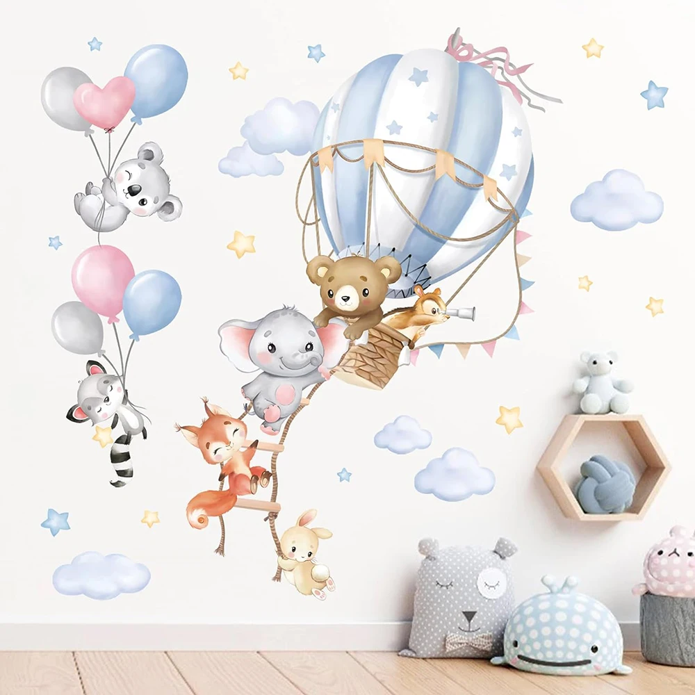 Large Hot Air Balloon Animals Wall Sticker Baby Nursery Kids