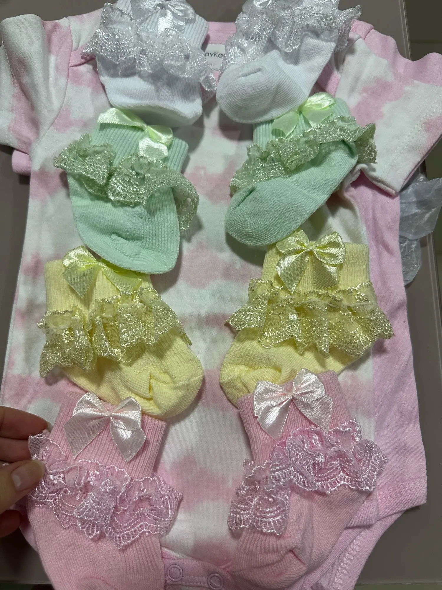 Lawadka 4Pairs/lot Newborn Baby Socks For Girls Cotton Lace Infant Girls Sock Princess Bow Toddler Baby Girls Socks Spring 0-24M