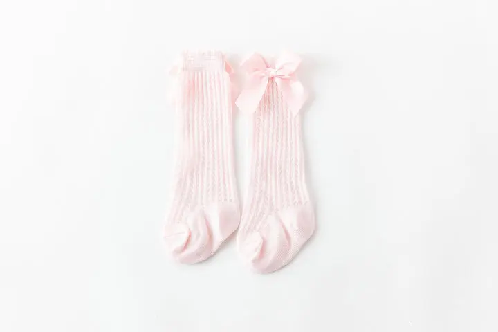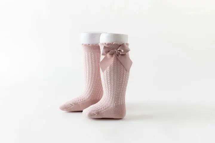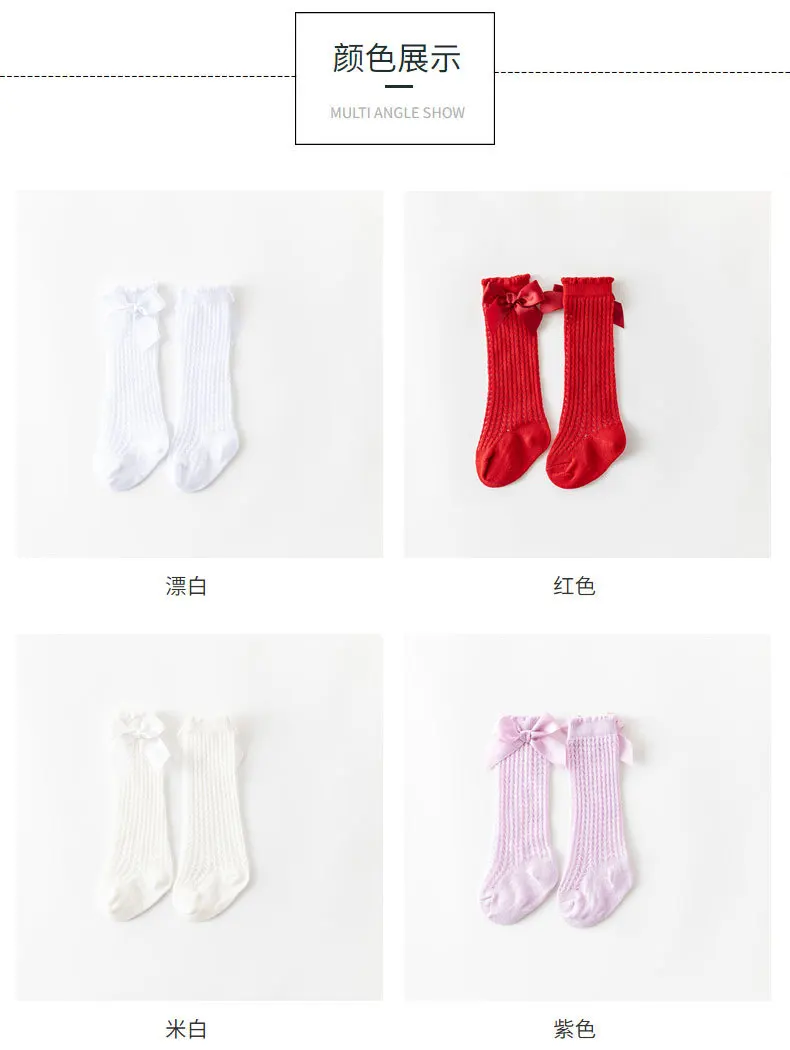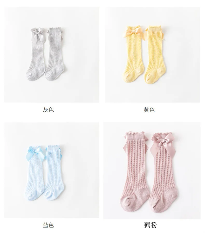 Limit quantity 0-2Y Children Girls Royal Style Bow Knee High Fishnet Socks Baby Toddler Bowknot Socks Kid Hollow Out Sock Sox