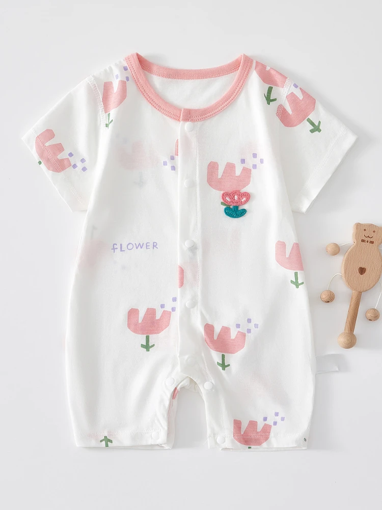 Newborn Baby Summer Onesie Pure Cotton Clothes Boys Girls Cute Printed Short Sleeve Romper Infant Loungewear Trend
