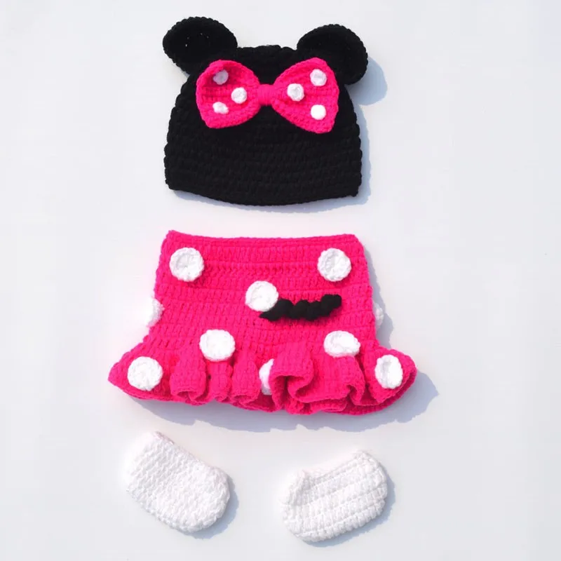 Newborn Minnie Crochet Outfit Baby Knitted Beanie & Skirts Set Toddler Photography Props Baby Girl Gift H283