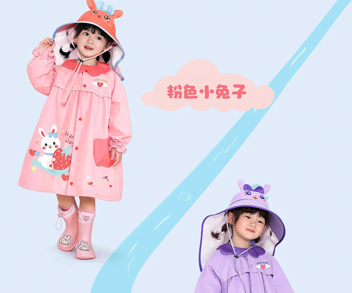 Rain and Shine Dual Use Girl Children's Raincoat Girl Kindergarten Children's Raincoat New Student Girl Baby Raincoat