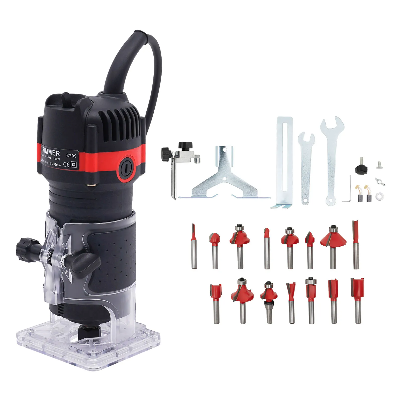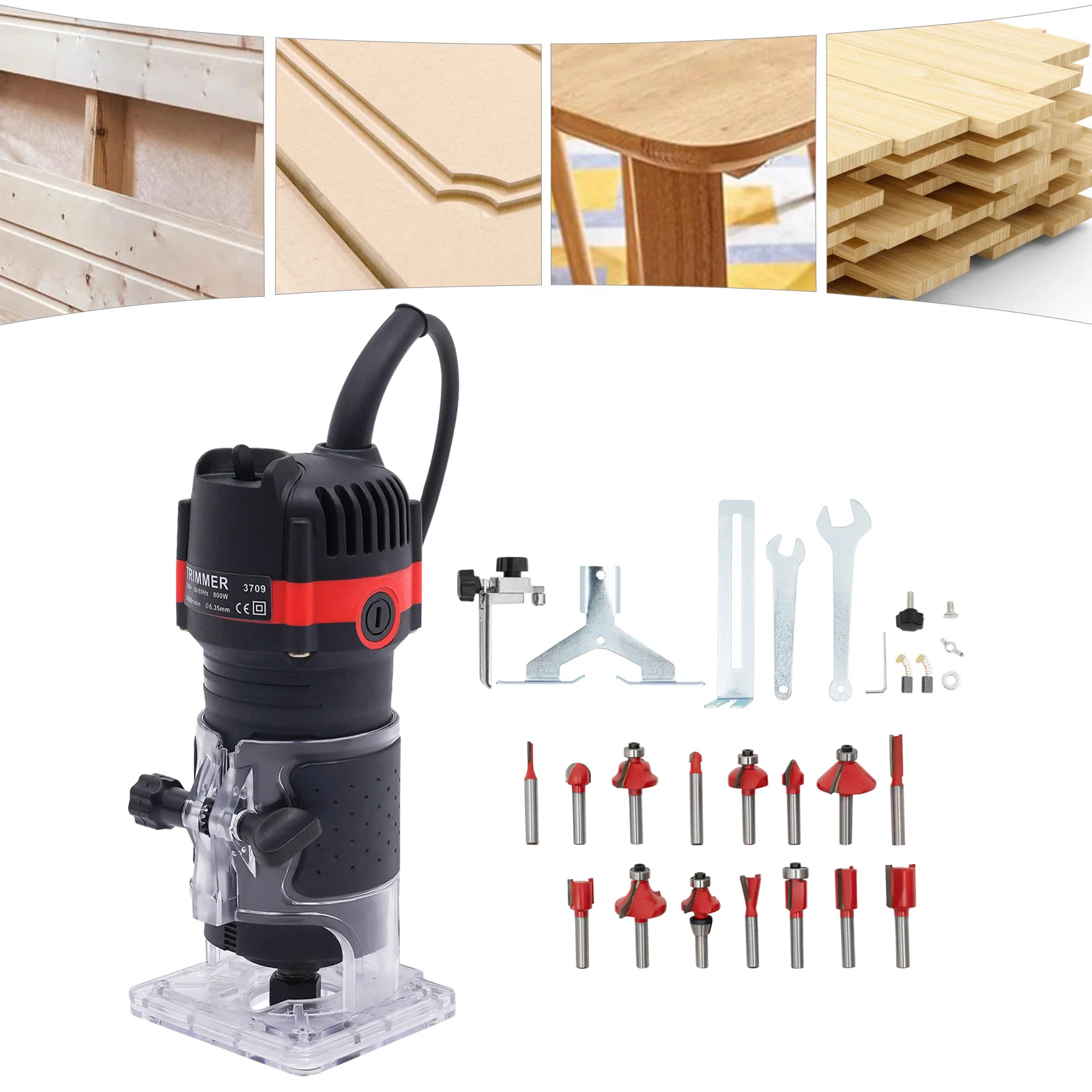 Router Tool with 800W Motor, 15 Collets, Adjustable Depth, for Grooving, Trimming, and Woodworking Projects