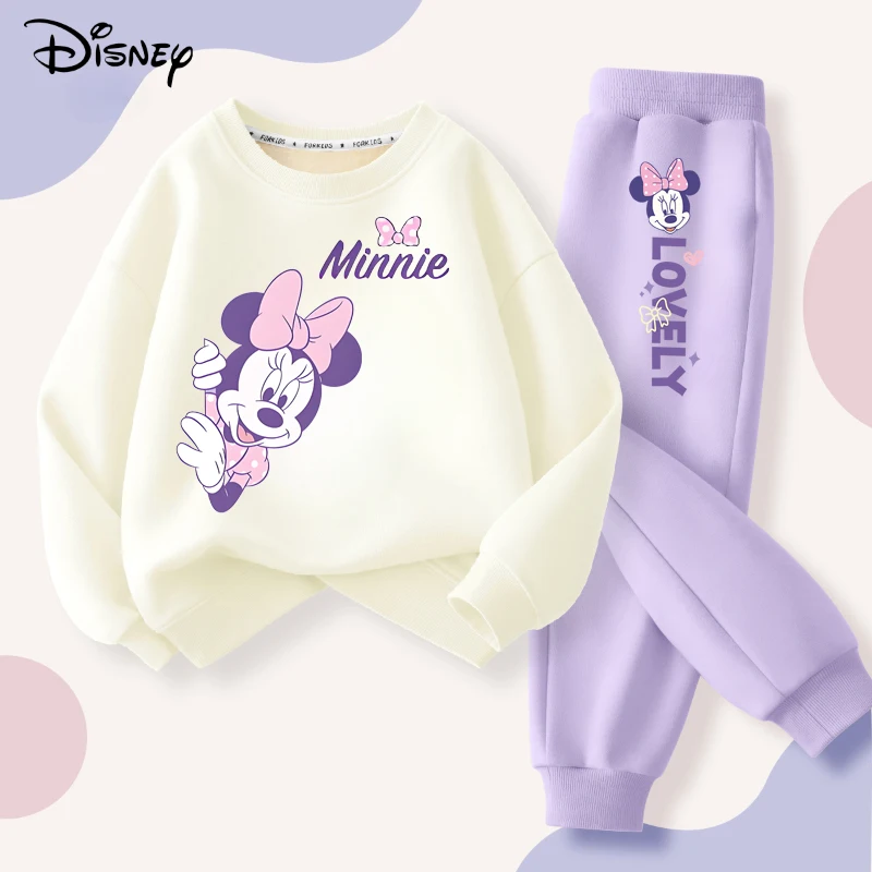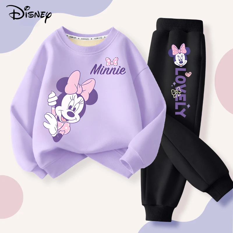 Spring Disney Minnie Printed Sweatshirt and Sweatpant 2pcs Set for Children Clothing Sets Girl Pullover Two Piece Suit Tracksuit