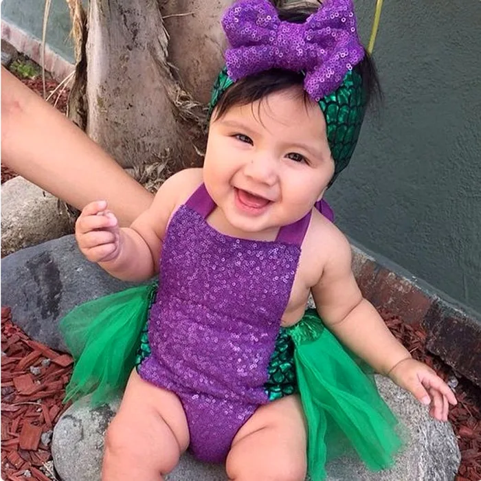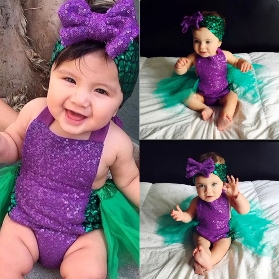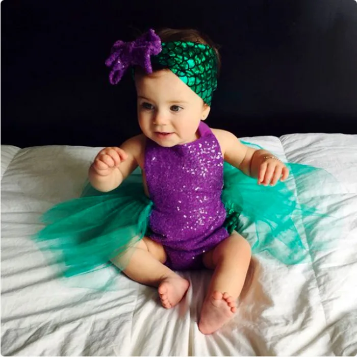 Summer Baby Girl Sequin Tulle Bodysuit Cute Infant Sleeveless Jumpsuit Girls Outfit Newborn Set