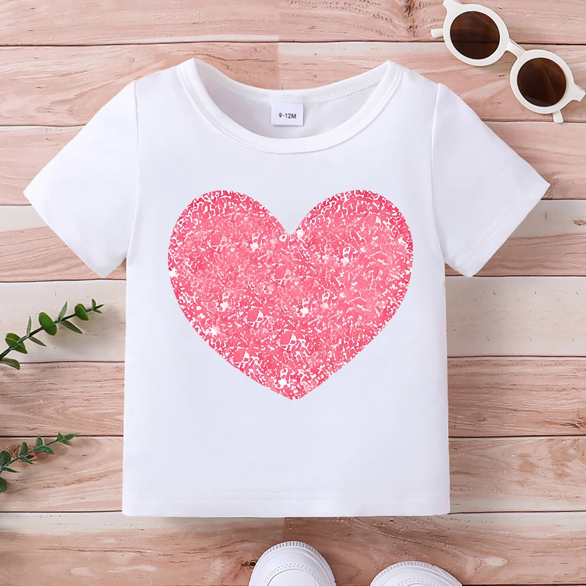 Summer T-shirt Round Neck Short Sleeved Heart-Shaped Pattern Top Stylish Versatile Multiple Options Baby Children's Clothing